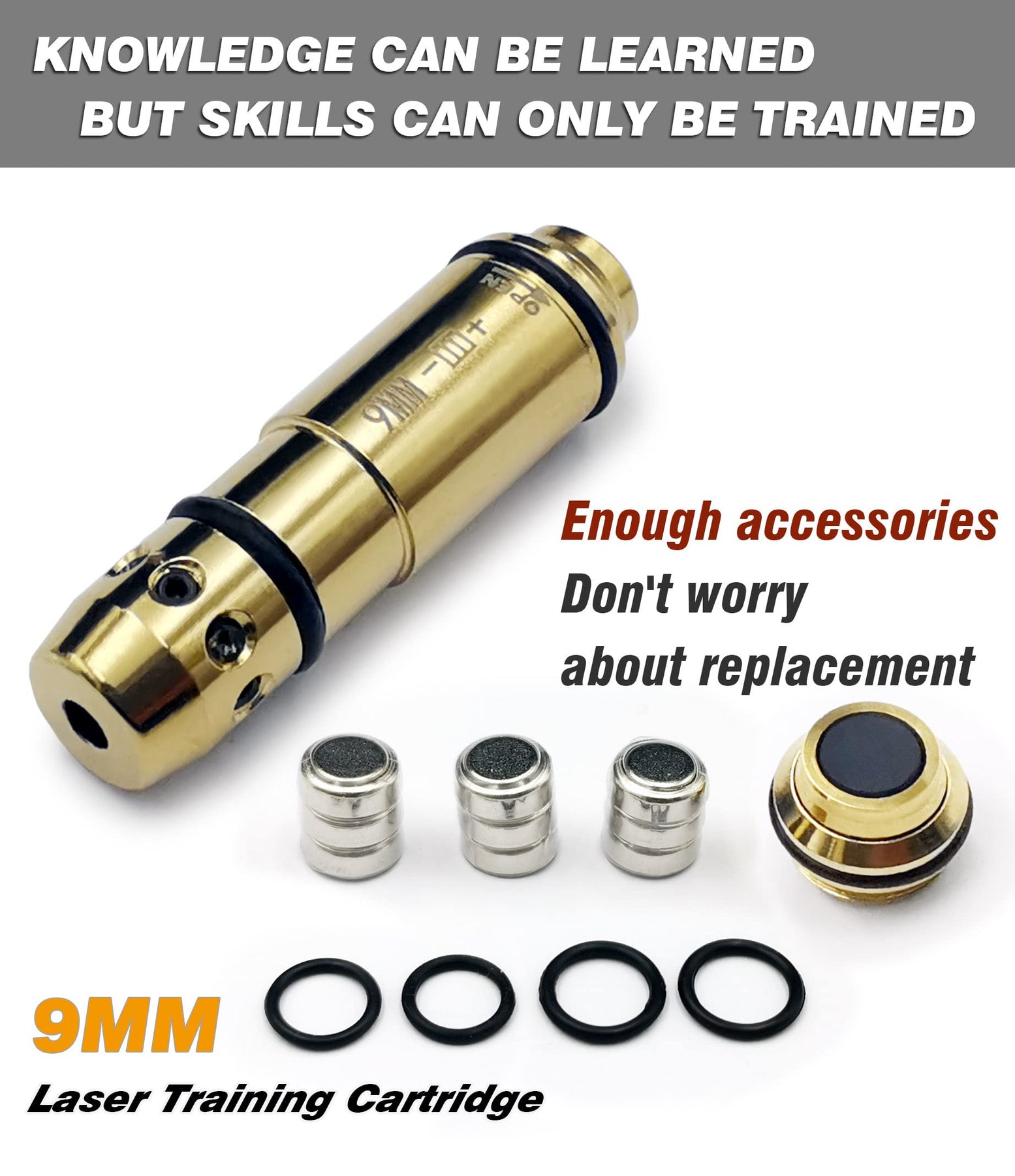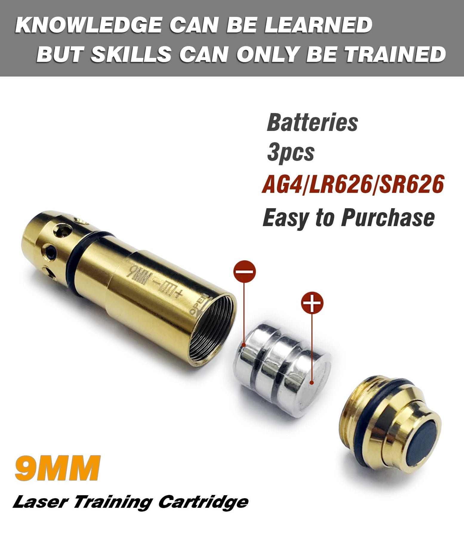 - Packaging: 1 x Training cartridge, 1 x Spare end cap, 4 x Spare O-ring, 9 x LR626 batteries.