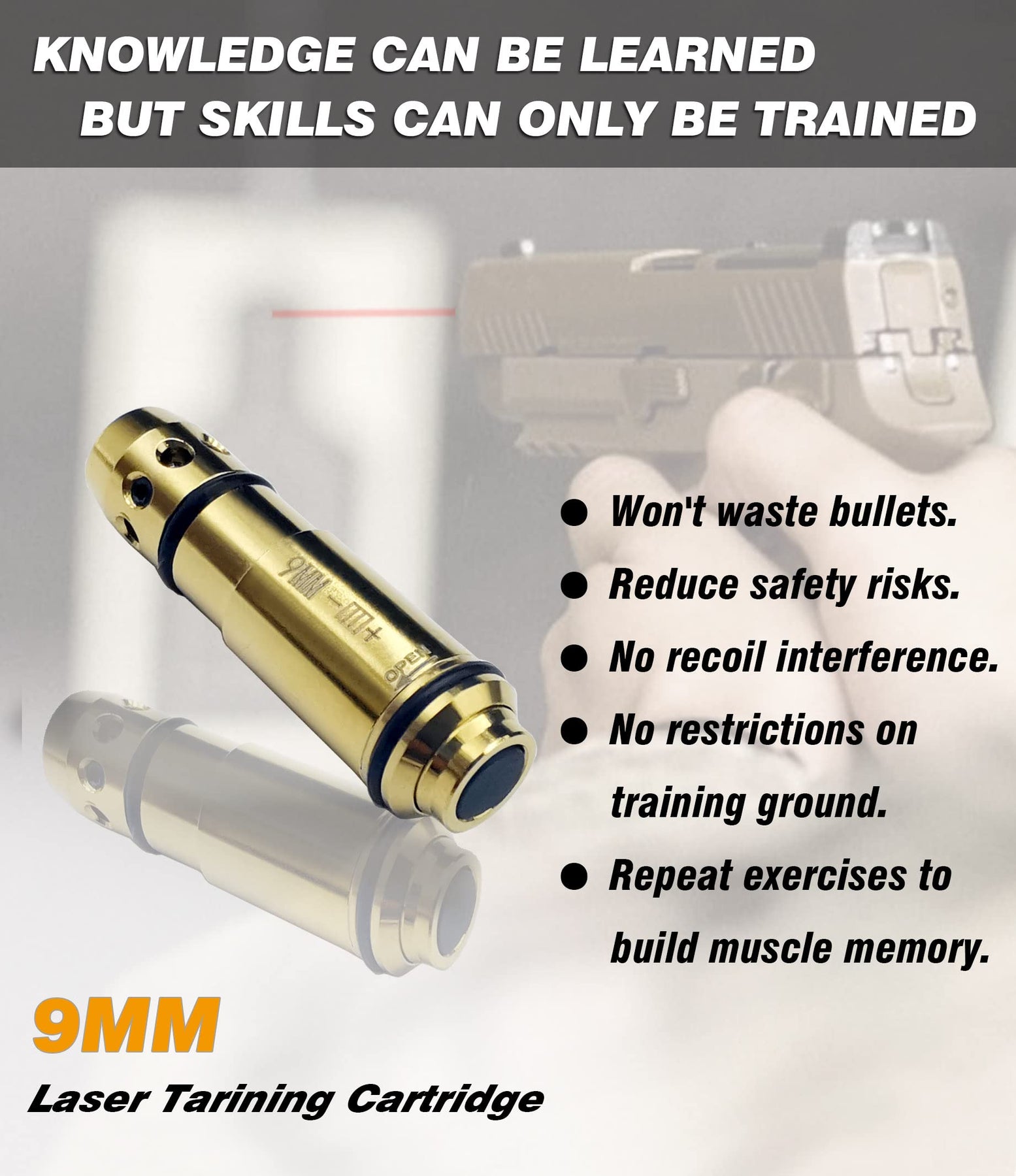 - Upgraded Switch: 3rd generation laser training cartridge. Laser only stays on 200ms will work for all 9*19 firearms. No matter the firing pin returns or not,The laser will flash once, waiting for the next hit.
