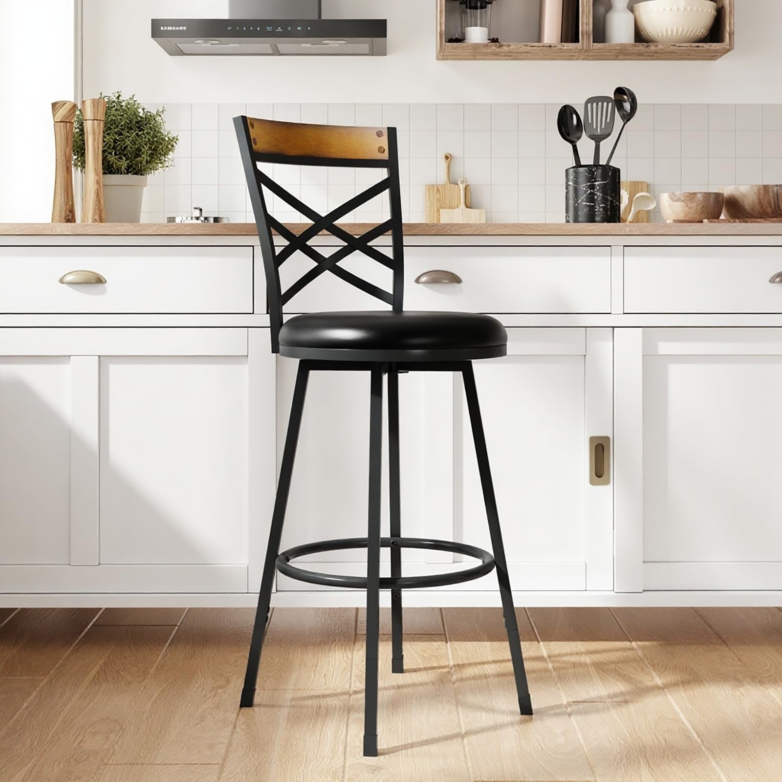Bring style and flexibility to your kitchen or bar with the BOSHIRO 2-piece swivel stool set. Featuring 360° silent rotation, adjustable seat height (24”–29”), and cushioned faux leather seating, these stools combine ergonomic comfort with durable construction. The antique bronze metal frame supports up to 350 lbs, and the quick-lock assembly makes setup effortless—even for one person. Perfect for kitchen islands, breakfast bars, or home entertaining.