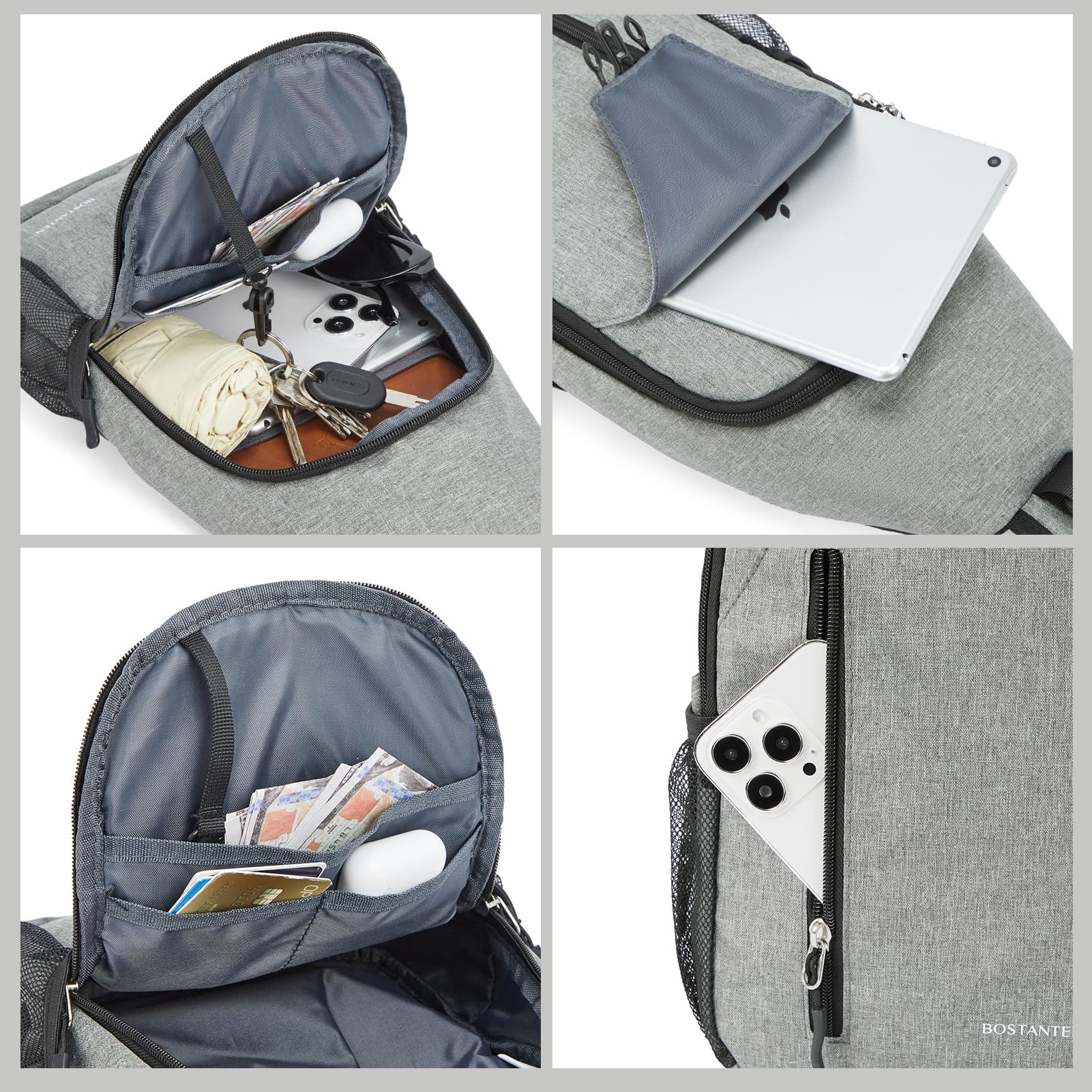 - Multiple Pockets, Stay Organized - The travel sling bag has multiple pockets and compartments, you'll have plenty of space to store all your essentials, including your tablet, wallet, phone, earphones, and cards. The main pocket has a key ring for easy hanging of keys