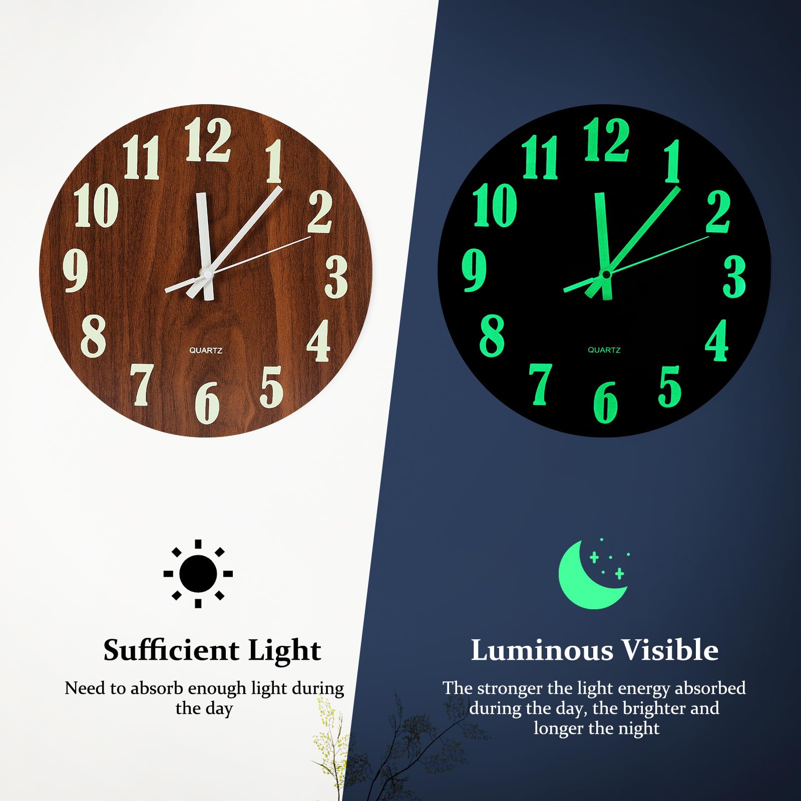 BTBHIHO 12''Luminous Wall Clock, Wooden Silent Wall Clocks Non Ticking, Battery Operated Glow in The Dark Clock, Home Wall Watch for Living Room Kitchen Decoration Bedroom Study Office