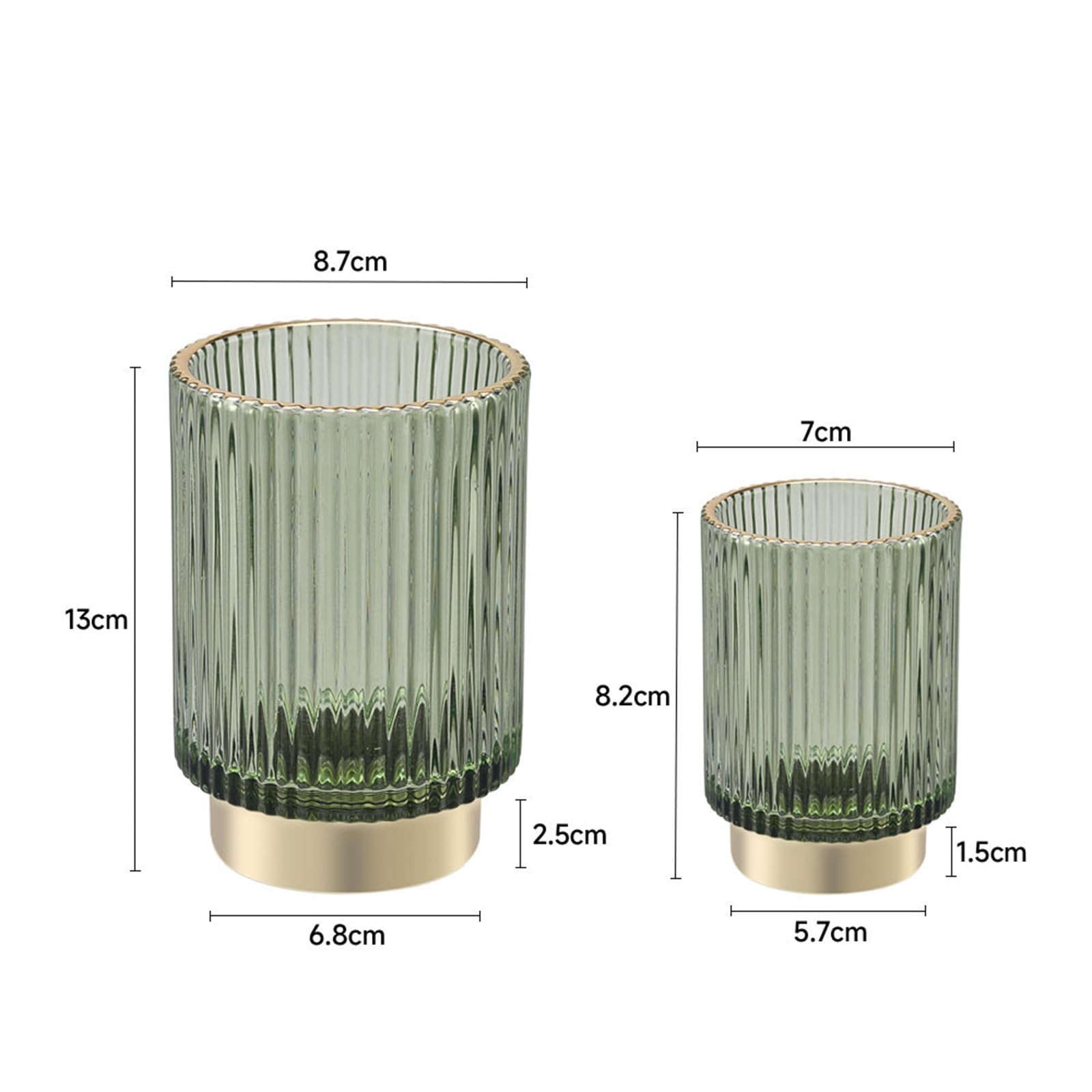- 【Elegant Design】 Large storage opening diameter: 3.42 inches, height: 5.12 inches, Small storage opening diameter: 2.75 inches, height: 3.23 inches. The glass is easy to clean and not easy to bump when in use. A set of 2 glass makeup brush cases can hold all your long and short makeup brushes, it will be an eye-catching presence on your dressing table.