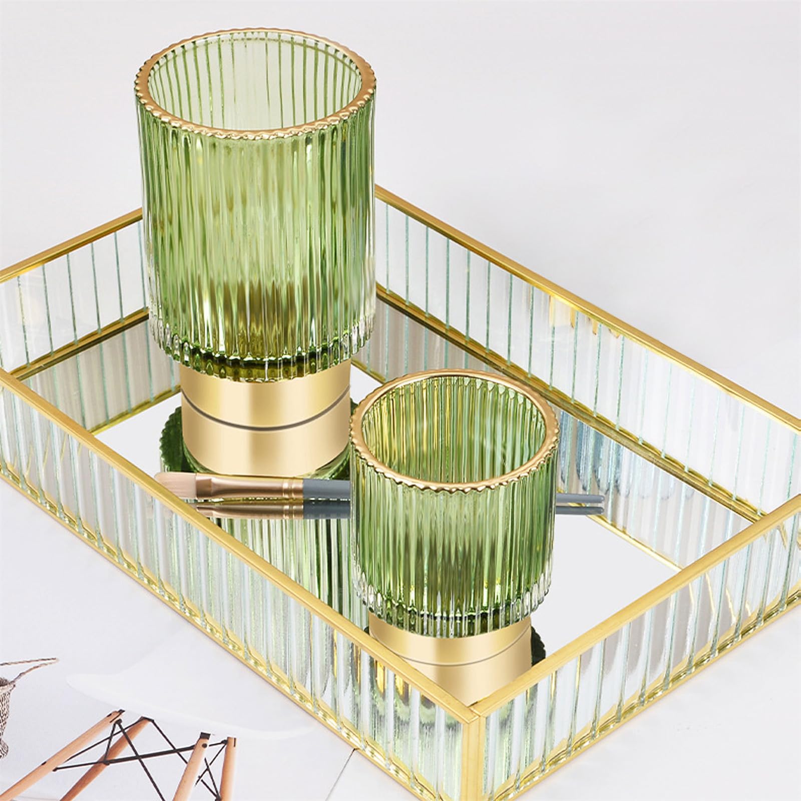 - 【Materials and Craftsmanship】The make-up brush holder is made of high quality glass material and gold metal base which is thick and sturdy. The beautiful stripe design of the glass body and the metal gilding on the top edge of the bottle mouth make the makeup brush holder more gorgeous and fashionable.