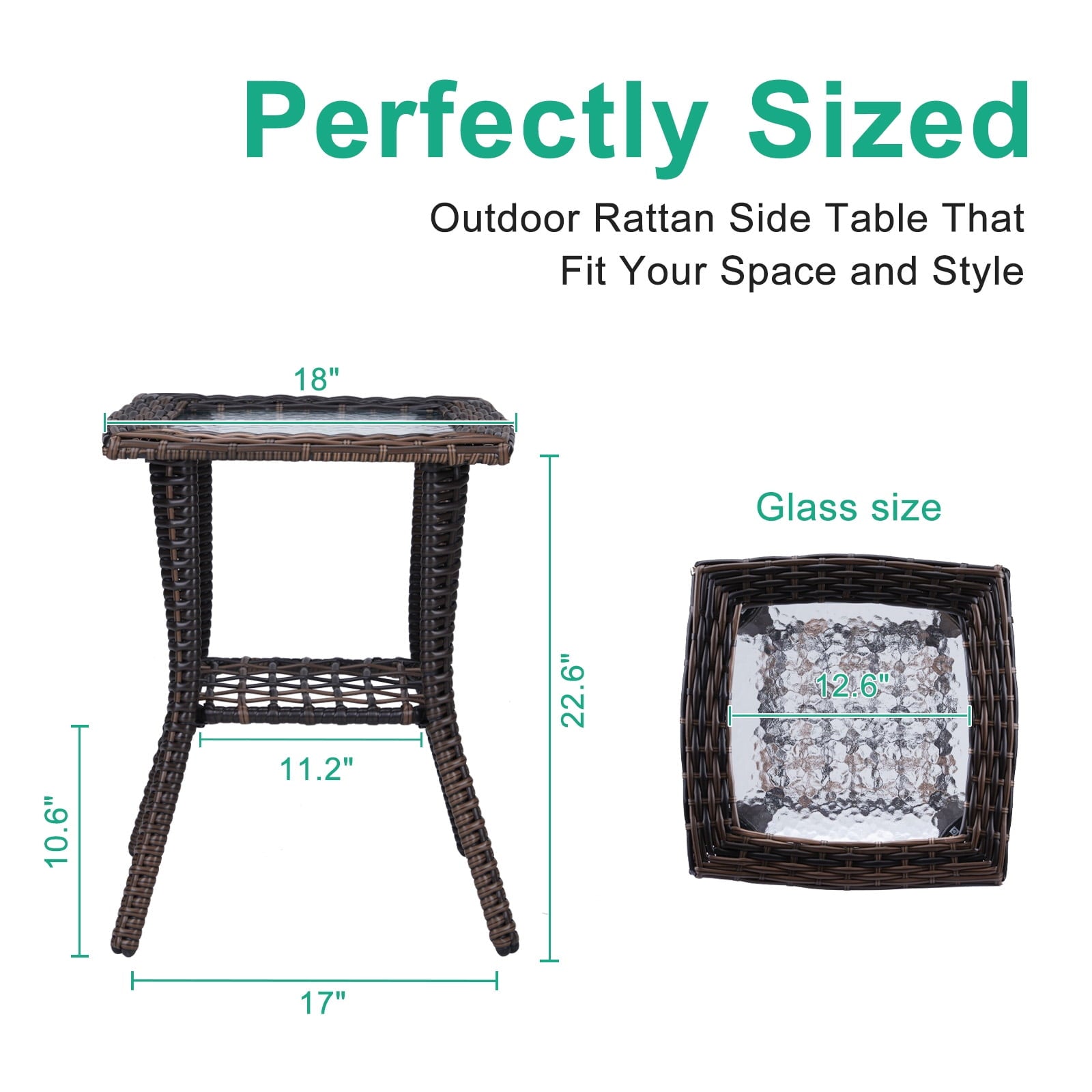 Elevate your living space with our Buytoshop Outdoor Wicker Side Table, a perfect blend of style and functionality. Designed for both indoor and outdoor environments, this table showcases a sophisticated hand-woven wicker pattern paired with a unique water ripple-patterned tempered glass top. Constructed with a durable powder-coated steel frame and all-weather wicker, it guarantees longevity and resilience against the elements. The table's two-tier design not only enhances its visual appeal but also offers ample storage space. With easy assembly and a versatile design, this side table is an essential addition to your garden, porch, balcony, or living room.