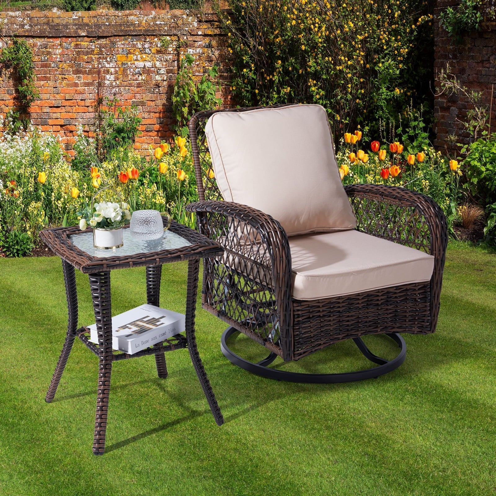 1. Material: Powder-Coated Steel / PE Wicker / Tempered Glass
