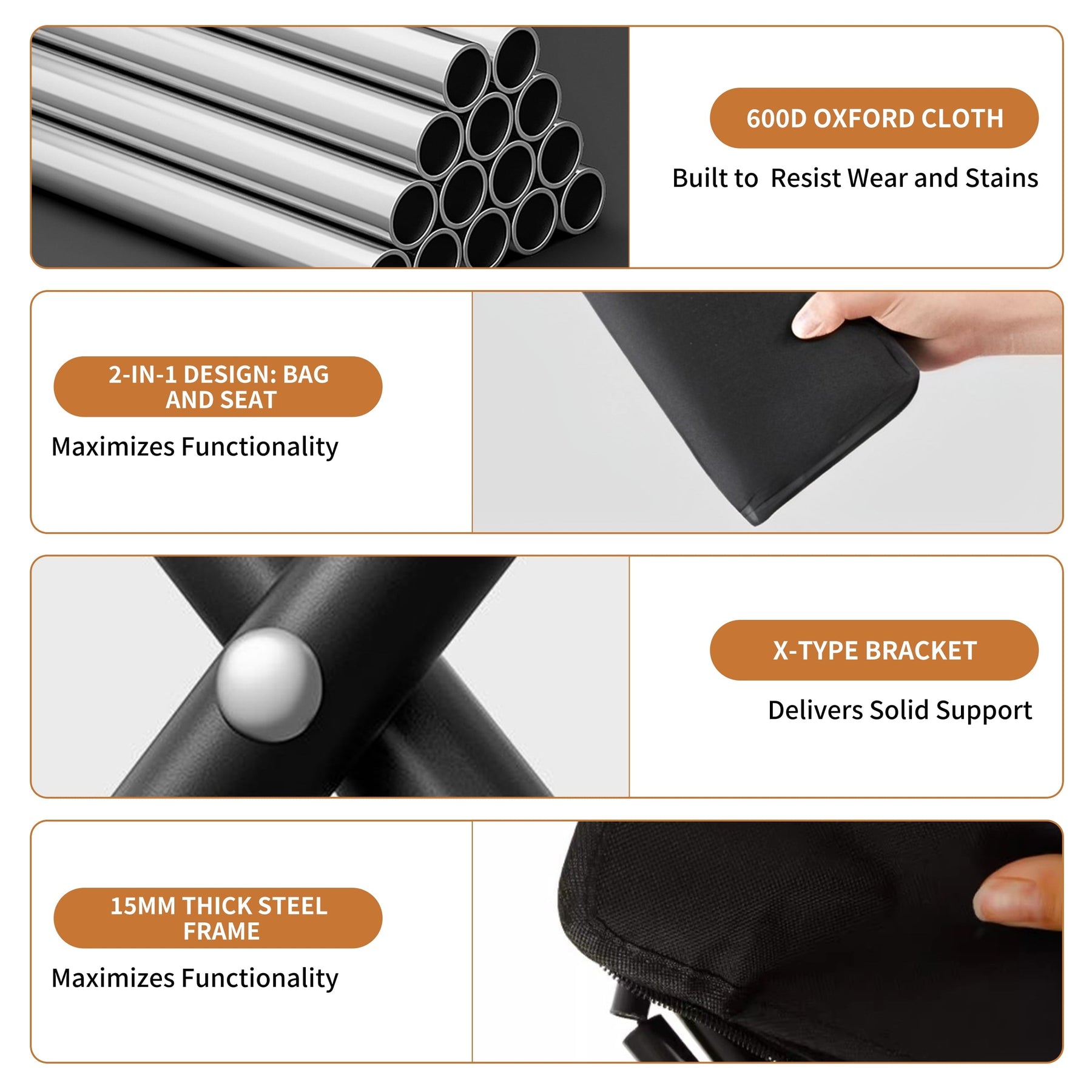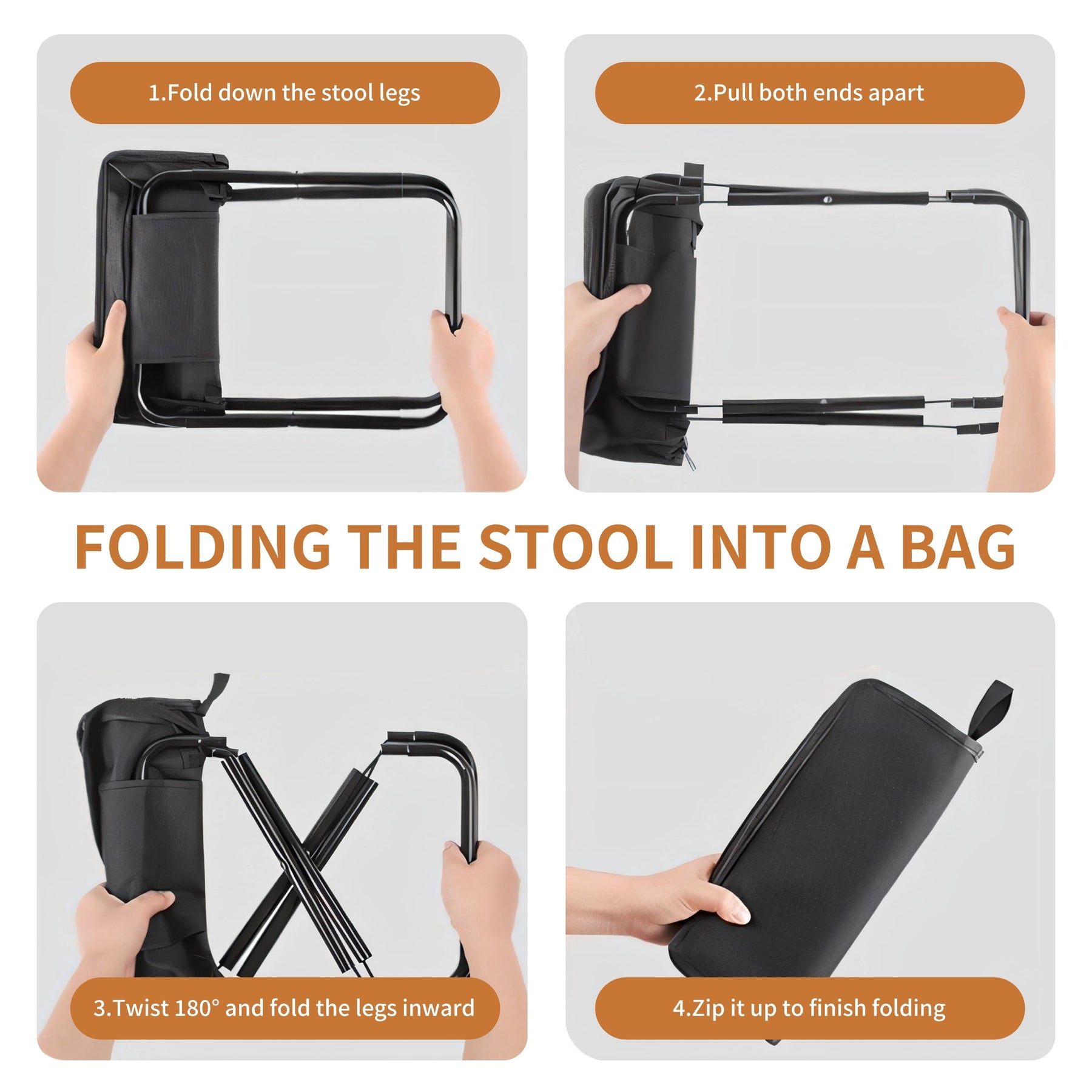 - 2-IN-1 CARRY BAG & SEAT COVER DESIGN: This 11-inch portable camping stool features a clever all-in-one design—its carry bag transforms into the seat cover. Just unzip and sit, no extra storage pouch needed. Perfect for minimalist camping, backpacking, or spontaneous outdoor adventures.