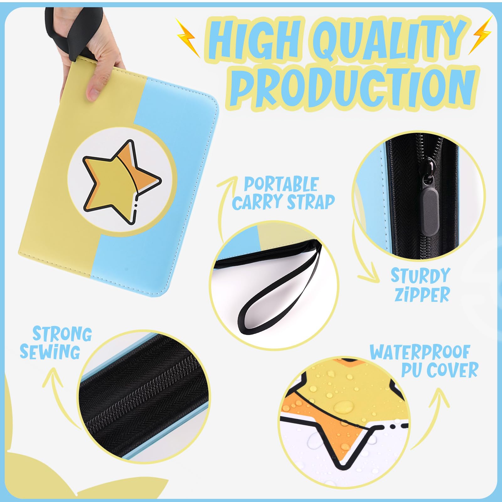 - 👍SPECIAL DESIGN - The binder comes with a wrist strap, making it easy for your child to carry. The wristband has a smooth surface that won't hurt their wrists. The double-sewn PVC pockets are highly transparent, allowing each card to be seen clearly. Let your cards be well-protected and clearly displayed.
