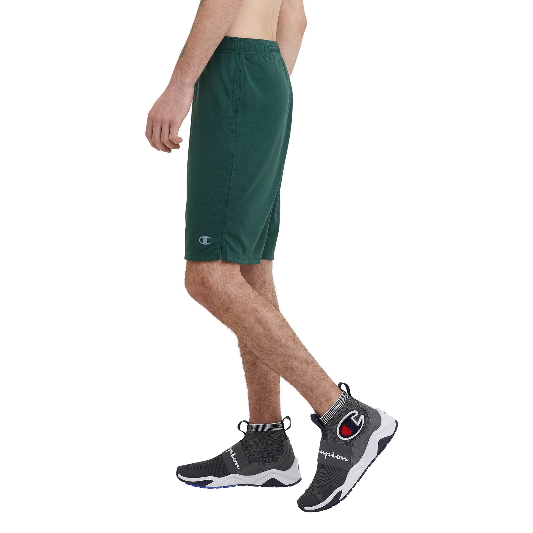 Details: THE LENGTH YOU WANT. For a pickup game, a workout at the gym, or a morning run, these sport shorts for men are a perfect fit. They're made with DOUBLE DRY™ technology that wicks sweat away from skin and dries in a flash to keep you cool and comfortable. Designed for maximum mobility, these men's shorts have an elasticized waistband with an inner drawcord that you can adjust to your best fit. Plus, side vents make for easy moves on and off the court. These performance training shorts are thoughtfully designed with convenient side-seam pockets to hold your phone, keys, and other essentials. You'll appreciate the knee-length 10' inseam adding coverage and comfort. The finishing touch on this effortless design is the iconic Champion C Logo at the left leg.