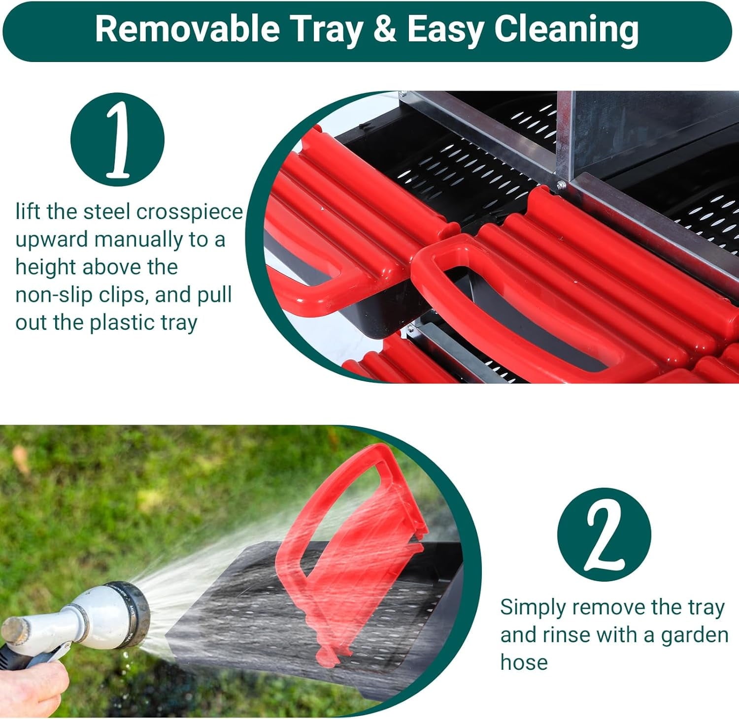 - Durable Construction: Built to last, our nesting boxes are made from rugged galvanized steel for both the roof and sides. This robust material, combined with ventilation holes, ensures a cool and dry environment for your hens. The removable, rust-proof plastic trays make maintenance and cleaning simple and efficient.