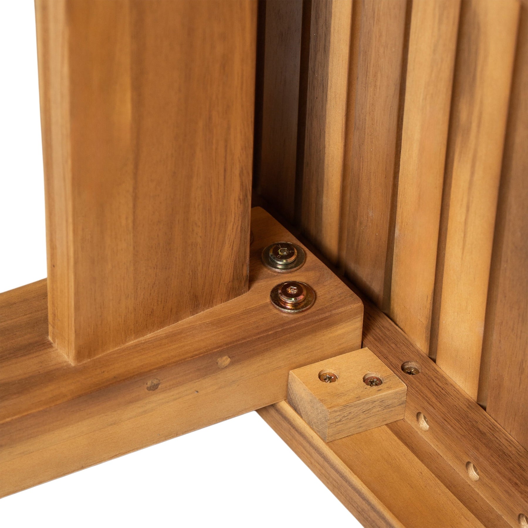 Upgrade your outdoor dining experience with this 69-inch rectangular patio table crafted from durable solid Acacia wood. Featuring a natural wood finish and stylish slatted tabletop, it combines classic charm with modern function. The spacious surface easily accommodates meals, drinks, and décor, perfect for family dinners or casual gatherings. Designed for durability, the Acacia wood resists weathering while the slatted design promotes quick drainage after rain. With a sturdy 300 lb weight capacity, this table offers reliable support and long-term outdoor performance. Its clean, timeless look complements a range of outdoor décors, from minimalist decks to rustic gardens.