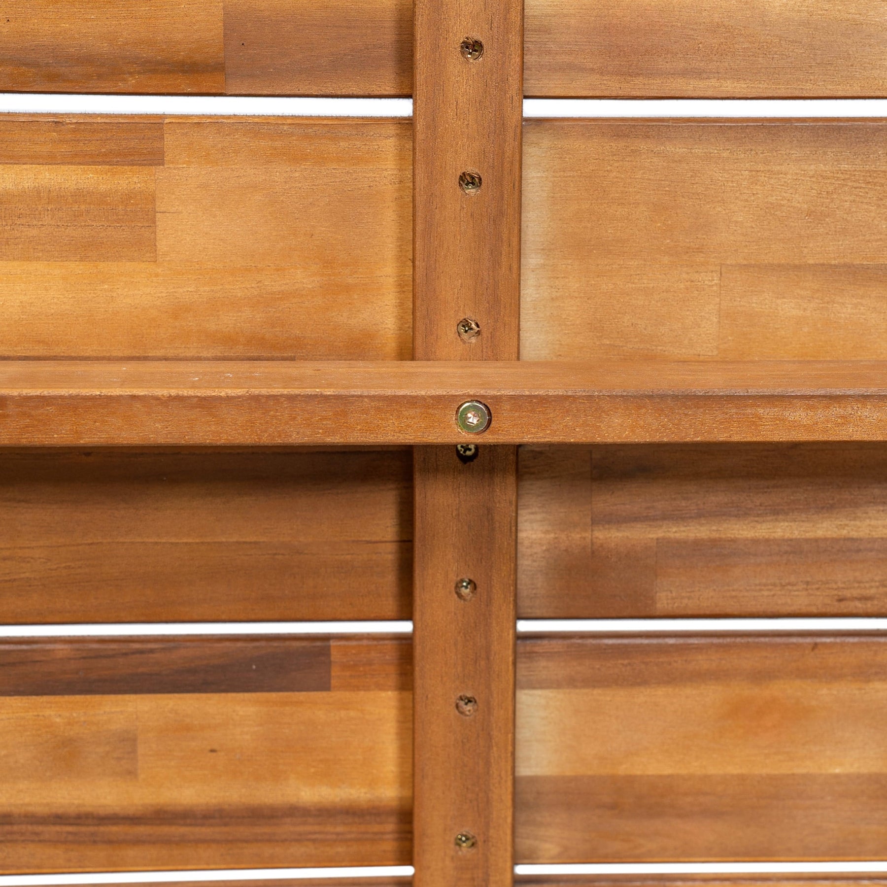Crafted from top-grade acacia wood, this outdoor dining table combines simplicity with durability. The slatted tabletop allows for quick water drainage, helping maintain a dry surface and reducing mold risk. Handwoven rattan legs with three-dimensional wrapping provide a unique Southeast Asian touch while offering strong support and breathability. Designed to seat multiple guests comfortably, the table is ideal for outdoor dining on patios or in gardens. Weather-resistant and reliable, it brings natural charm to any outdoor setting, though protection from harsh elements is recommended to extend its lifespan.
