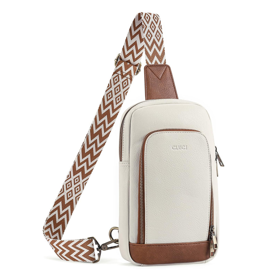 CLUCI Crossbody Bag for Women, Sling Bag for Women, Leather Large Sling Backpack Cross body Bag for Woman for Travel Hiking Beige with Brown