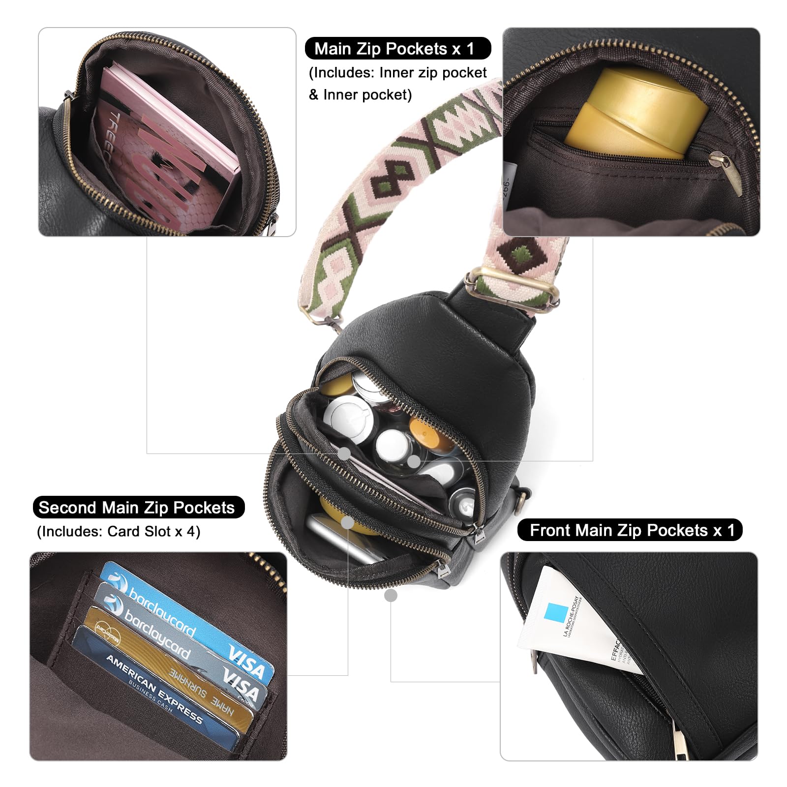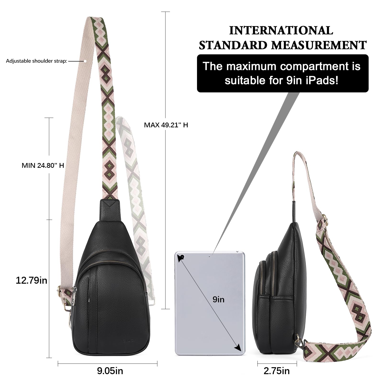 - 【Perfect Size】SIZE: 9.05' * 2.75'' * 12.79'', WEIGHT: 0.81lbs.The cross body bags can be used as sling backpack, crossbody bag, chest bag and shoulder bags, making it lightweight and convenient to carry. This crossbody sling bag for women has adjustable colorful strap that can be adjusted to your needs. The adjustable strap length is 24.40 to 45.66 inches.