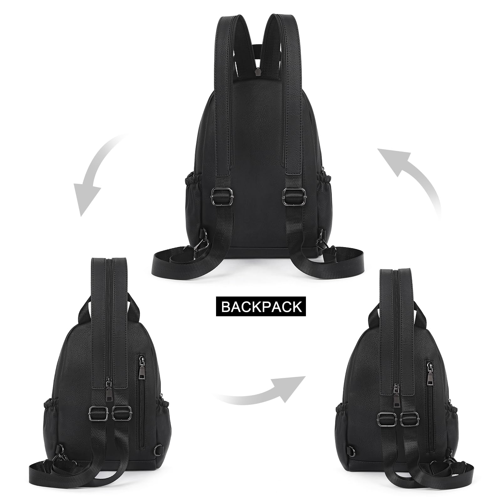 - 【Large Structure】: The sling backpack features a thoughtfully designed multi-layer structure to cater to various needs. The main ziped compartment include 1 zip pocket and 1 open pocket, helping you keep your items organized. The front medium-sized zipped compartment with card slots for easy storage of cards and small items. The frontmost small zipped pocket allows quick access to frequently used items, two side open pockets ideal for water bottles or other small items.