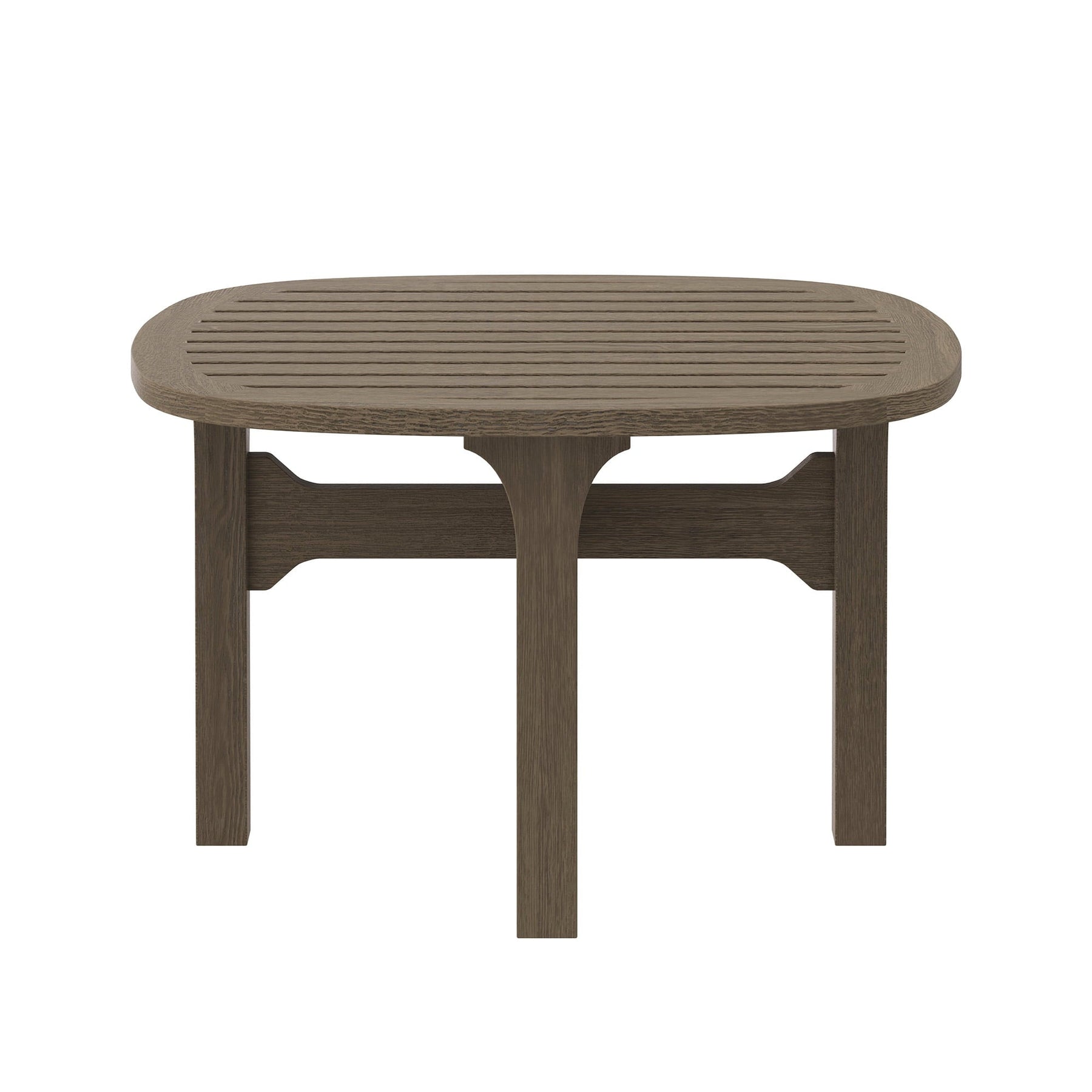 Refresh your al fresco space with the Saratoga Outdoor Patio Side Table. Expertly crafted from sturdy teak with a water-based finish that showcases the beautiful wood grain, this rounded square wood coffee table features a beautifully slatted top for lasting durability and a timeless aesthetic. The base is designed with intersecting stretchers, offering both structural support and a refined silhouette. Perfect for outdoor entertaining, or lounging the Saratoga Teak Side Table enhances any patio, deck, or garden setting. Includes non-marking floor glides for added stability and surface protection. Weight Capacity: 123 lbs.
