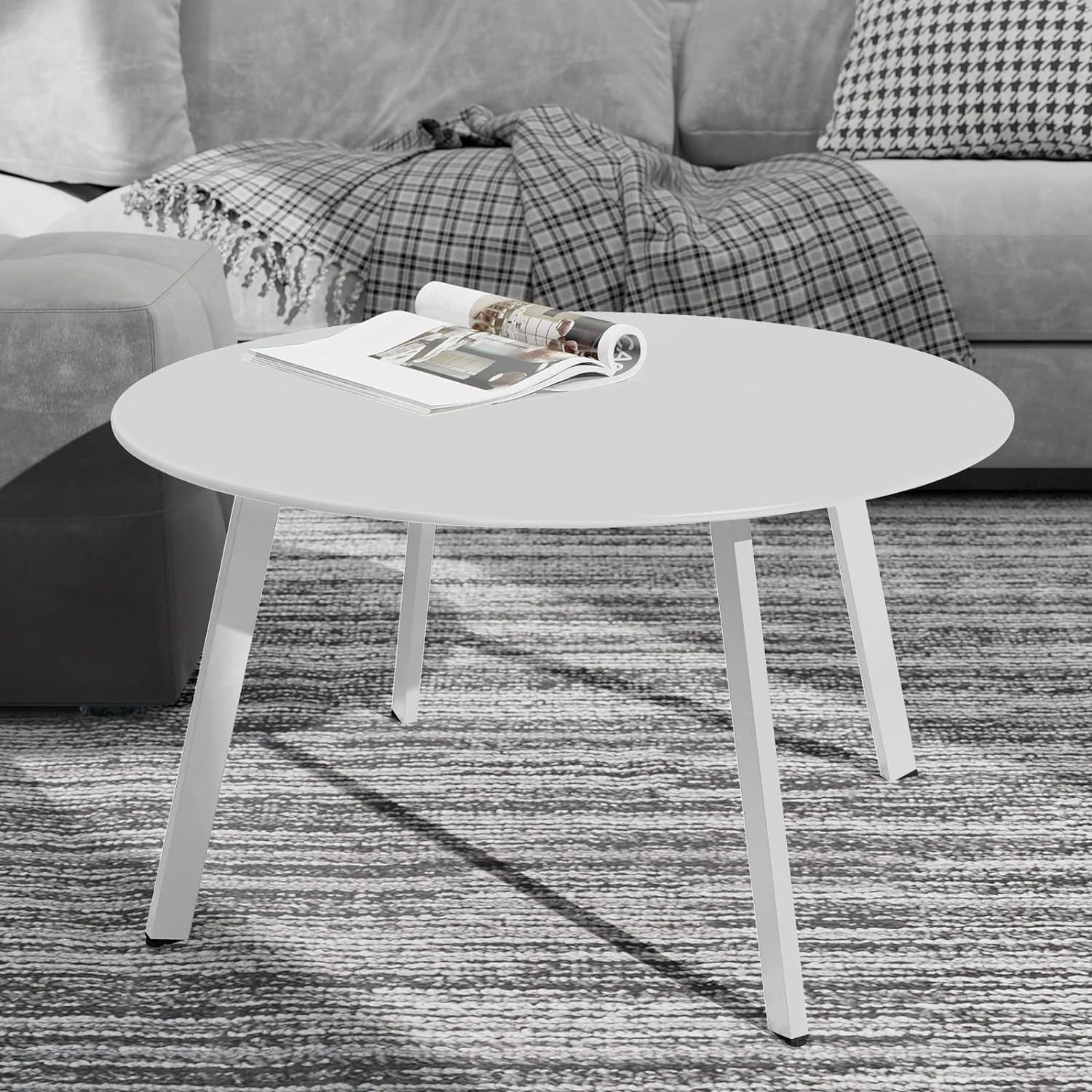 This sleek and modern round table is designed for contemporary living spaces, offering both functionality and minimalist elegance. The smooth, flat tabletop provides ample surface area for drinks, books, or decorative items, making it ideal for living rooms, bedrooms, or small offices. Supported by three sturdy, slightly splayed legs, the table ensures enhanced stability on various floor types. The straight legs taper down to non-slip feet, keeping the table steady during use. Its clean lines and uncluttered design blend seamlessly into any decor, adding a touch of sophistication without being overly ornate. Lightweight yet durable, this versatile piece combines practicality with timeless style, perfect for enhancing your home or workspace. Compact and space-saving, it’s an excellent choice for modern interiors.