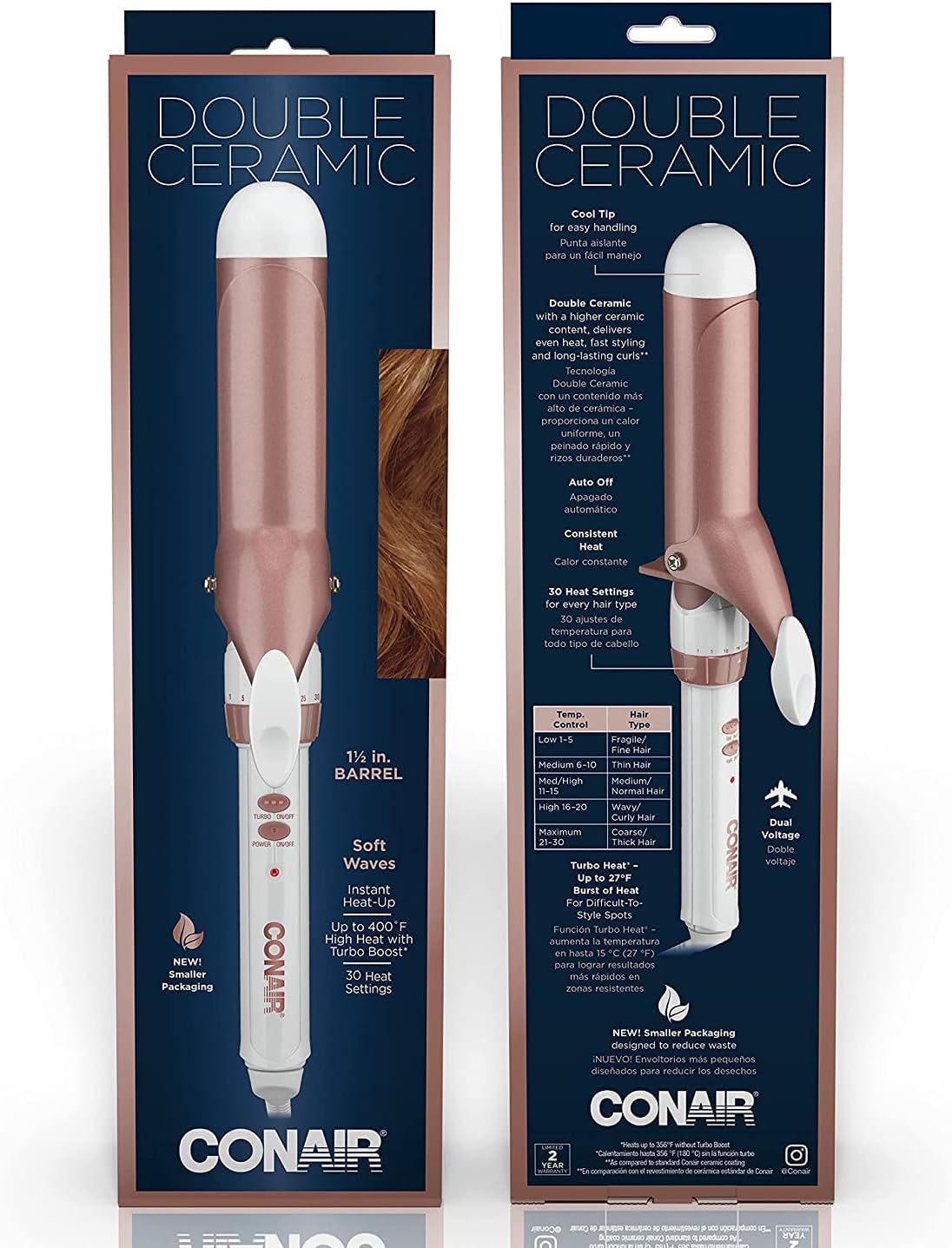 - Ceramic Curling Iron: Designed to create big, beautiful soft waves, this 1.5 inch curling iron features higher ceramic content for even heat and gorgeous, long lasting styles with less frizz