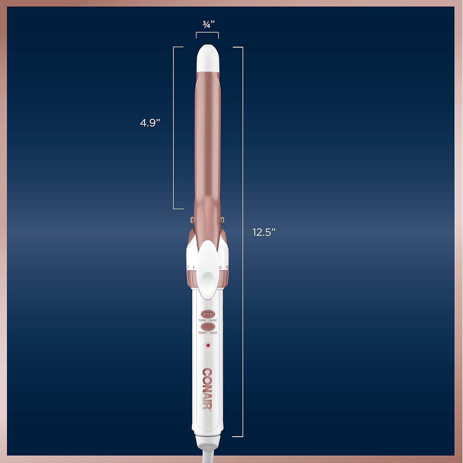 Give yourself a hair style that endures, even in humidity, with this Conair Double Ceramic Curling Iron with Bonus Claw Clip. This item gives you long-lasting, 18-hour curl control, even in the worst of weather conditions. This 0.75-inch curling iron helps you create beautiful styles and eliminate frizz spots. You get 30 high-heat settings that create beautiful ringlets. With multiple settings you also get versatile styling. Use this Conair curling iron when you need to set your hair for an important business appointment. Style it for a hot date with that special someone or just give your hair a special touch for a day to yourself. However you work it, this item gives you quality style in multiple variations.