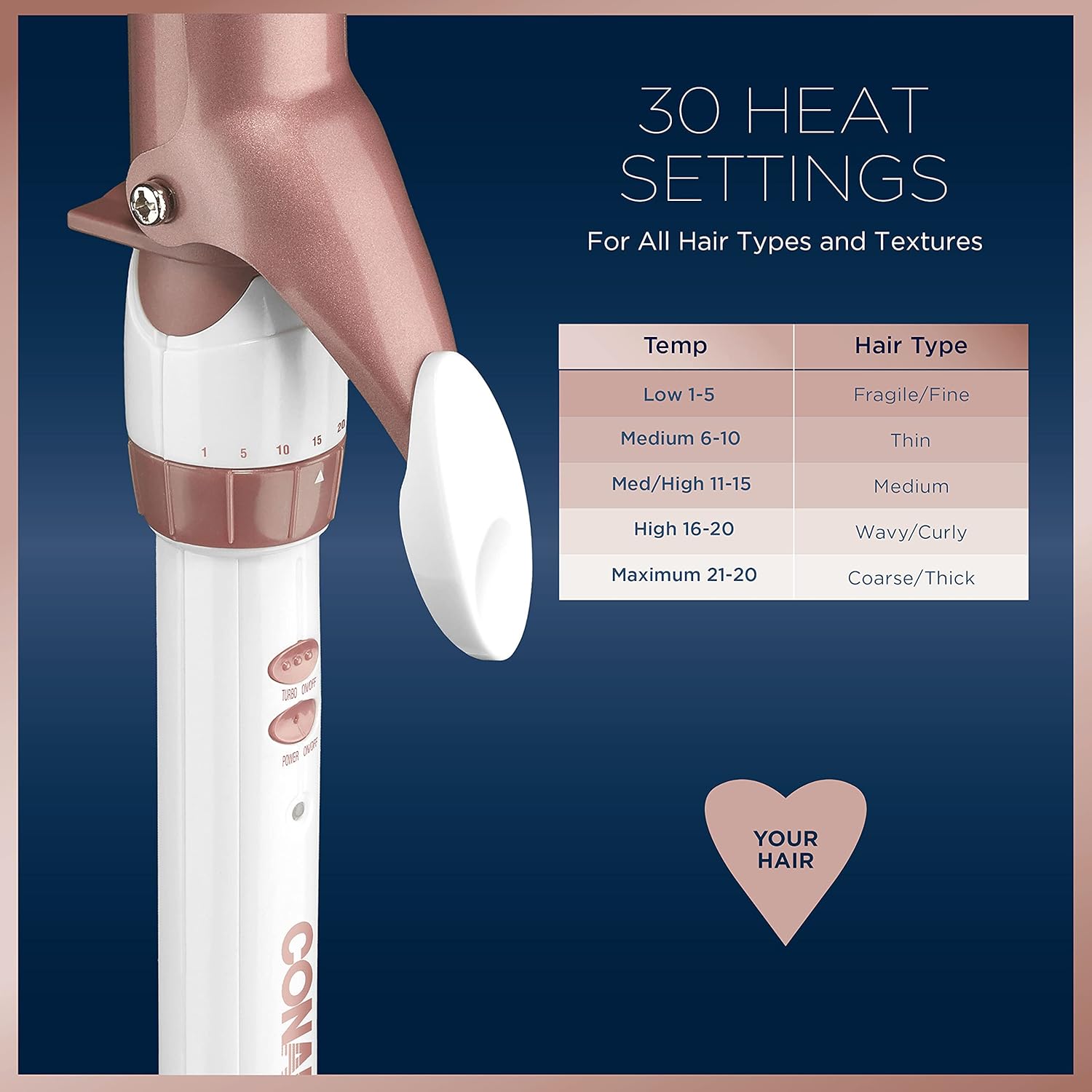 - Versatile Function: This curling iron boasts 30 heat settings with instant heat up to 375 degree F and Turbo Heat boost for difficult to style spots, plus a unique cool tip for safe, easy handling and an Auto Off feature