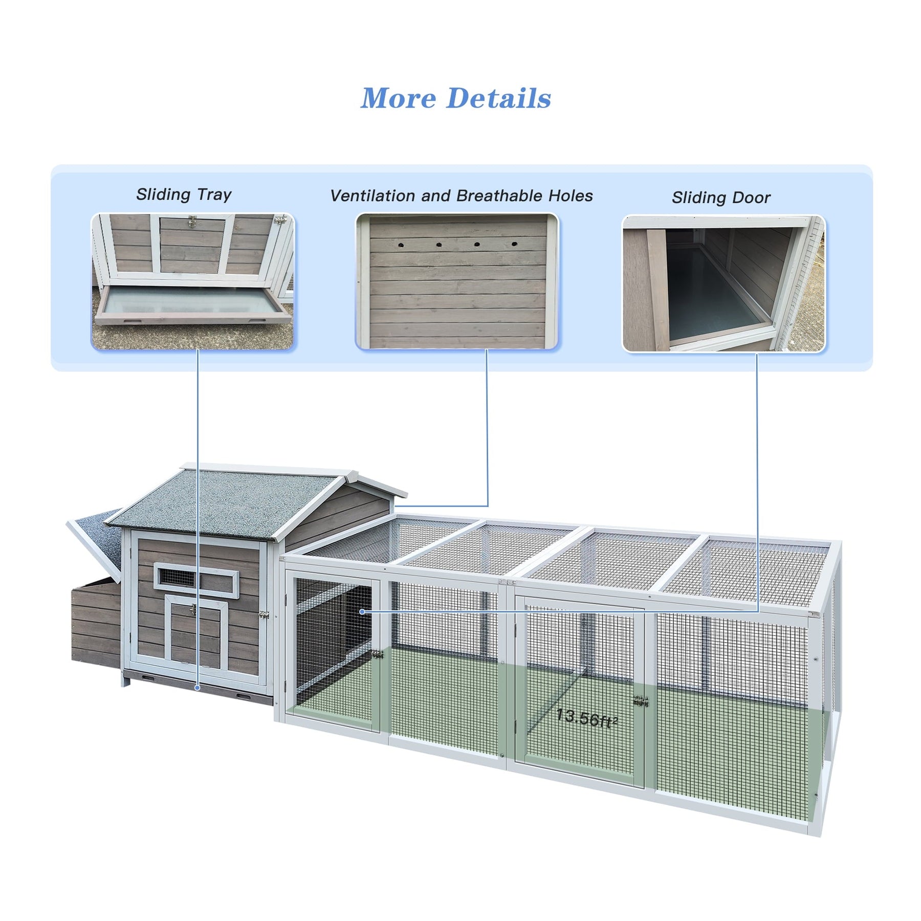 Introducing the Coowa 118' Wooden Outdoor Chicken Coop – a haven for your poultry! This exceptional hen house is crafted with high - quality wood, designed to provide a safe, comfortable, and functional space for your feathered friends.With a generous large activity space measuring 118"L * 27.6"W * 36.6"H and a total area of 22.6 ft² (including all spaces), it features a spacious 13.56 ft² chicken run. Your chickens will have plenty of room to roam, forage, and exercise, promoting their overall well - being.The free - range door at the front is a remarkable feature. It can be opened and closed freely, allowing your chickens the option to enjoy the outdoors while still having a secure place to retreat to. You can easily manage their access to the outside world, whether it's for supervised free - ranging or keeping them safe at night.The ventilated window offers flexibility. You can close or open it according to the seasonal climate, ensuring optimal air circulation inside the coop. This helps to keep the environment fresh, dry, and comfortable for your poultry, reducing the risk of respiratory issues.Cleaning is a breeze with the built - in slide - out tray. It efficiently collects droppings and waste, making maintenance quick and hassle - free. Simply pull out the tray, empty it, and put it back – no more messy clean - ups!Safety is a top priority, which is why the nesting box comes with a strong lock. This lock provides an extra layer of protection, safeguarding your chickens from potential predators like wolves and foxes. Your precious poultry will be able to rest and lay their eggs in peace.