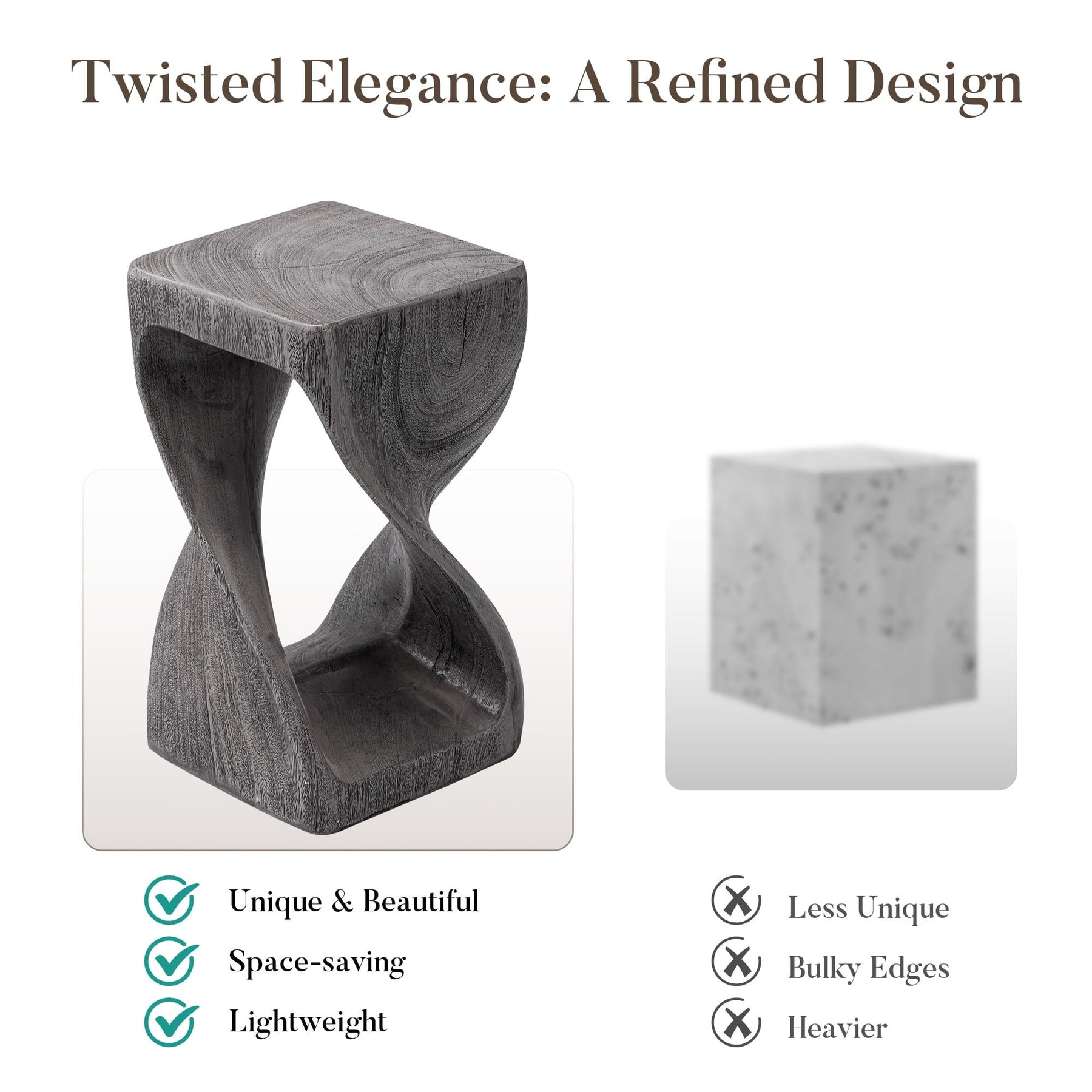 Elevate your living space with the COSIEST Magnesium Oxide Side Table, a perfect blend of modern artistry and functional design. Crafted from high-quality magnesium oxide, this side table features a striking dark gray finish with natural wood-grain textures, adding a touch of sophistication to any room. The unique twisted base creates an eye-catching sculptural silhouette, while the square top (10.83' x 10.83') provides a stable surface for drinks, books, or decor. Lightweight yet sturdy (20 lbs), this versatile piece works as an end table, bedside table, or accent table in living rooms, bedrooms, or offices.