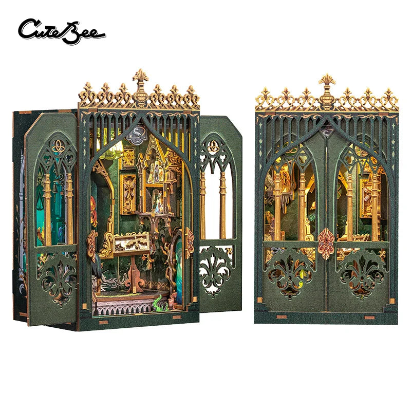 CUTEBEE Bookstore Book Nook with Light DIY Miniature Wooden Dollhouse for Decor Gift Bookshelf Insert Kit 3D Puzzle