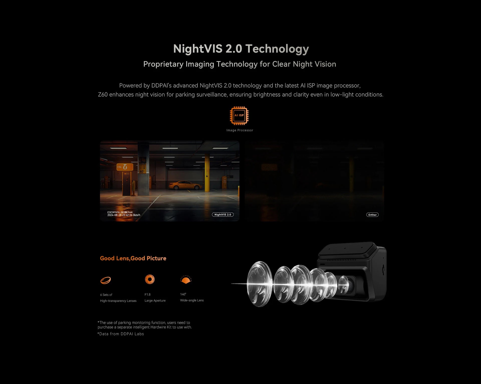 DDPAI Z60 4K+2K+1080P Dashcam Support Rear and Interior with GPS 5GHz WiFi ADAS NightVIS 2.0 Dash Camera 24H Parking Monitor