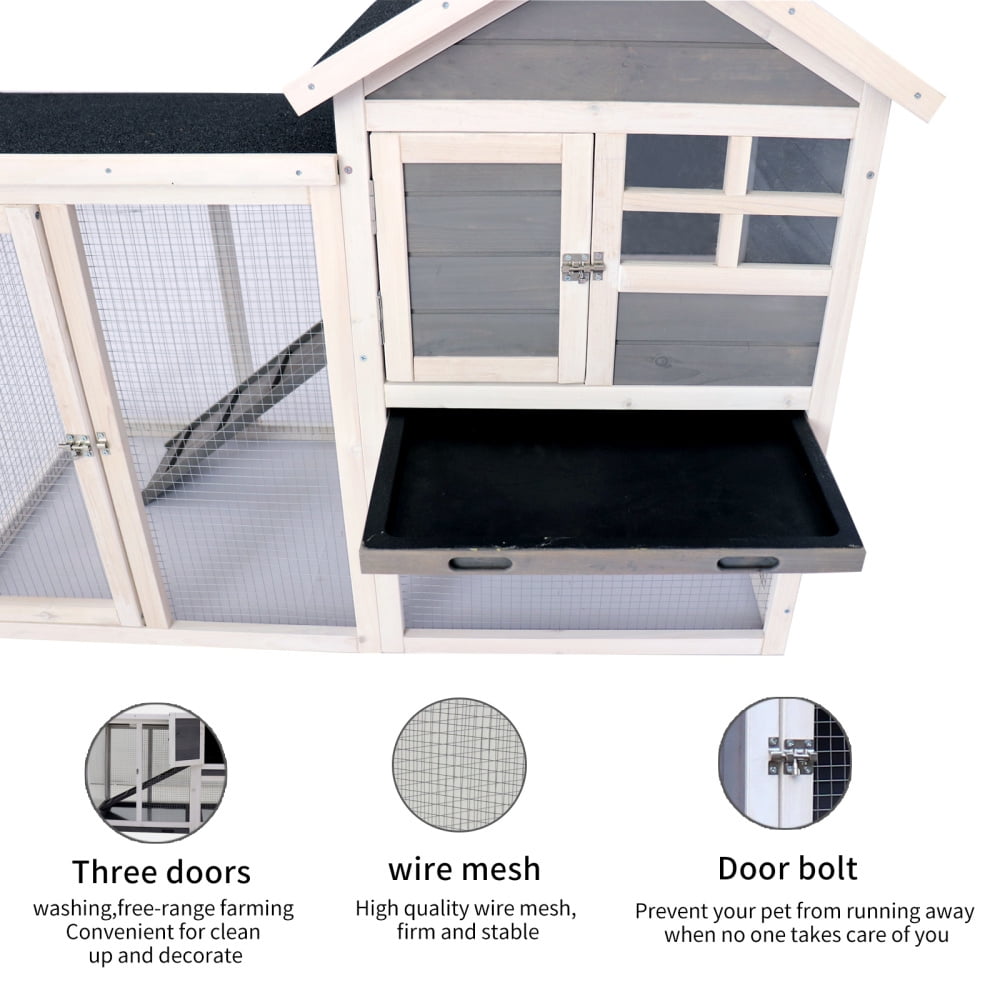 This rabbit hutch is designed with a deeper pull out tray makes clean more easily. Better plastic will never leak or rusty. Also, with our exclusive glass windows, you can check on your pet without any interruptions and keep your rabbit safe