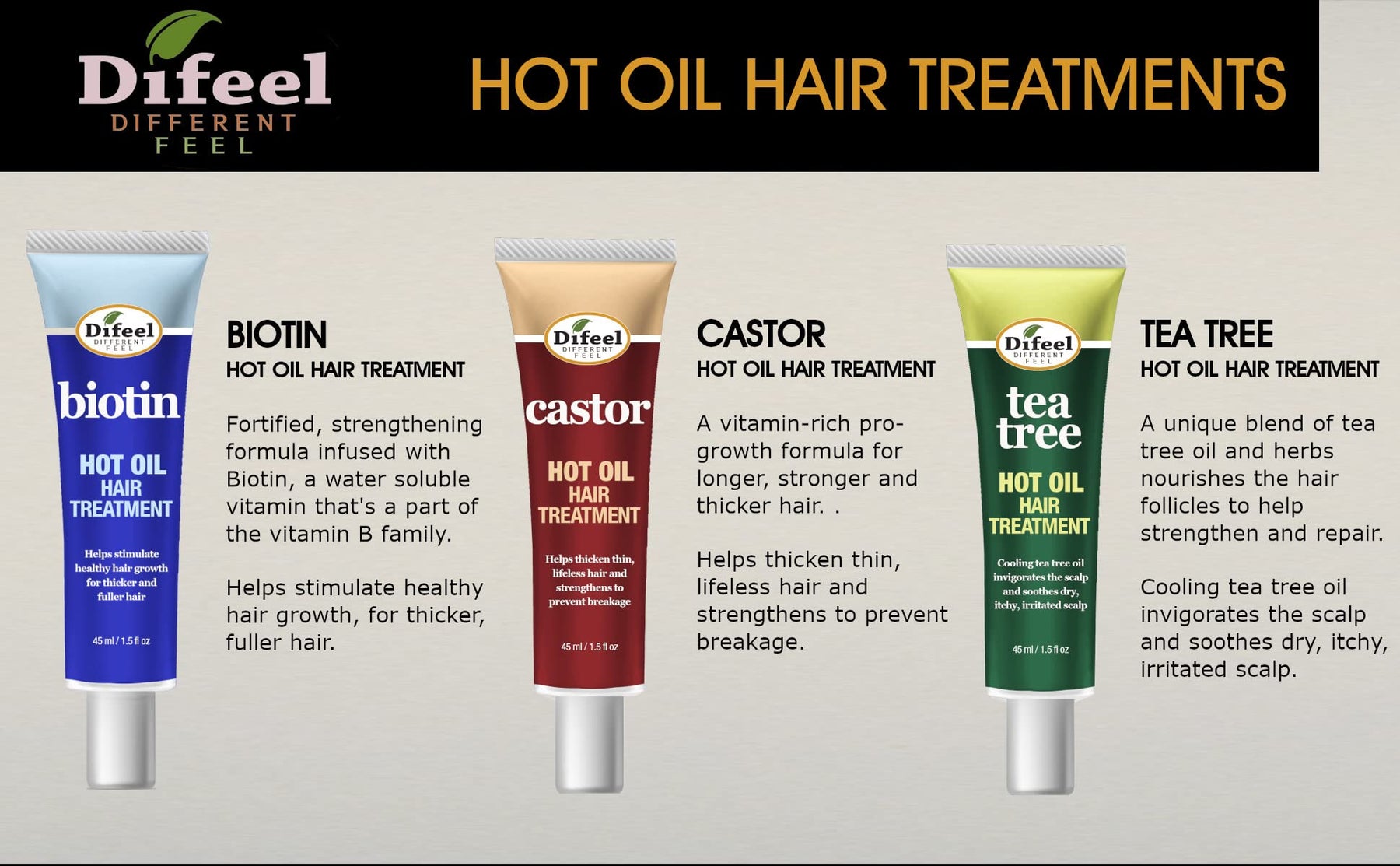 • Natural Ingredients: Difeel Hot Oil Treatments are made using the finest, natural ingredients, formulated into protein rich oils loaded with hair care benefits. Free of harmful chemicals that can damage your hair such as parabens and silicone.