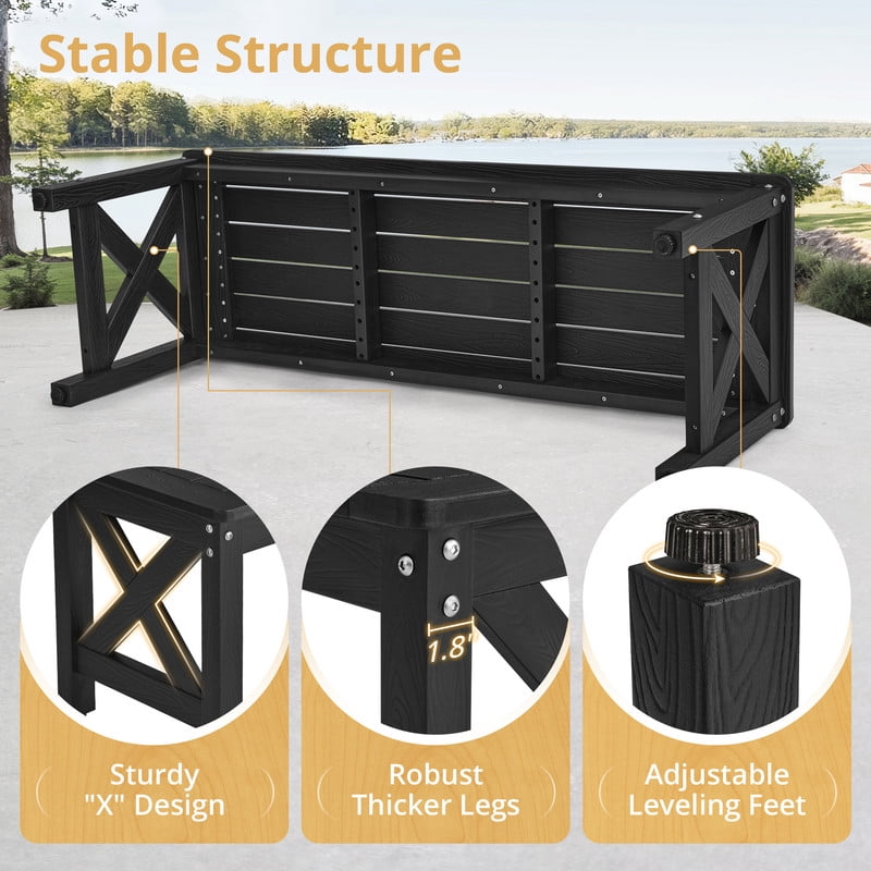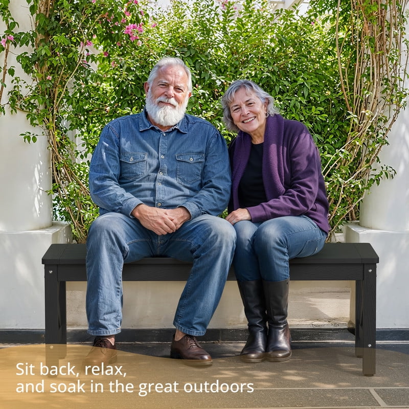 This bench reinvents the outdoor lounging experience with its elegant, streamlined design. The seat is ergonomically curved to fit the curves of the shoulders and back, keeping you comfortable even after sitting for long periods of time. Selected high-density HDPS environmental protection material, combining lightweight texture and strong weather resistance, not afraid of the sun and rain - UV stabilization process to make the color of the seating seasonal, from the spring garden to the winter patio is the finishing touch. No need to paint and maintain, impact resistance, mold and mildew resistance make daily care worry-free. Whether it's a tree or a flower path, it's the perfect carrier of nature and modern aesthetics, giving your backyard, balcony or patio an artistic temperature.