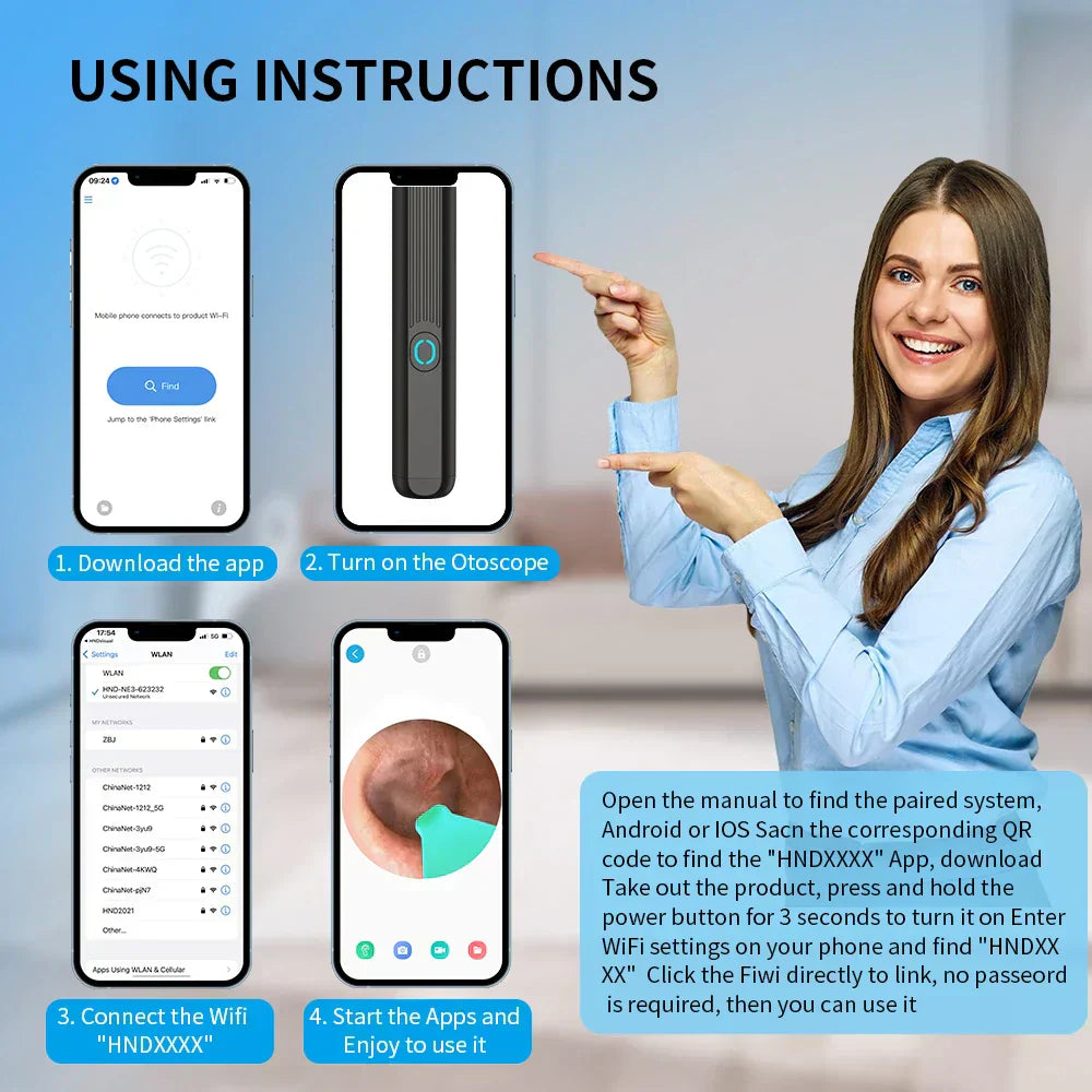 Clean your ears with precision and ease using our Earwax Remover Cleaning Tool with Mini Camera. The mini camera allows for a thorough cleaning, providing a safe and effective way to remove excess earwax. See the results for yourself with this professional and objective tool.