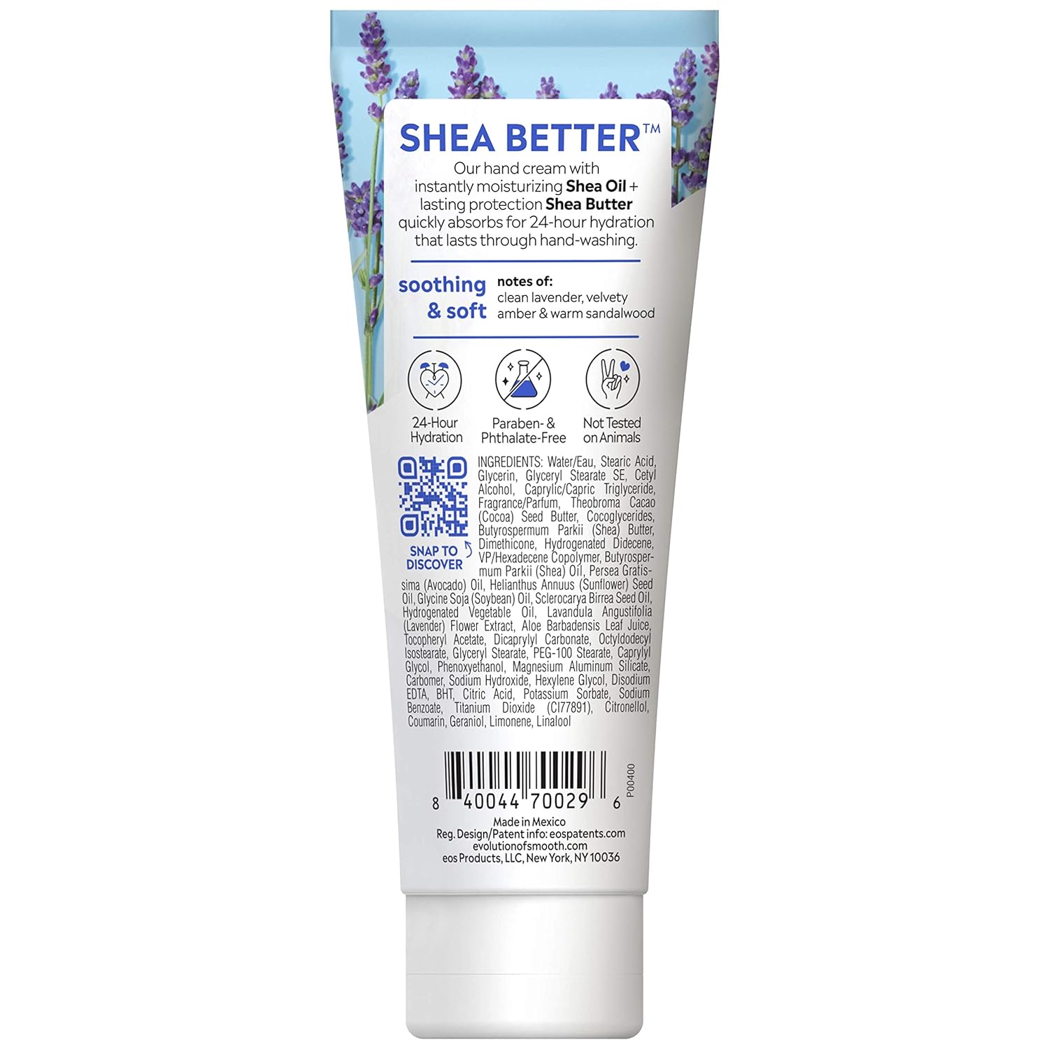 - SUSTAINABLE SKIN CARE: eos hand cream will protect and moisturize your skin with 7 nourishing oils + butters, including natural shea butter and shea oil. Shea oil provides immediate moisture & comfort while shea butter provides lasting moisture & protection