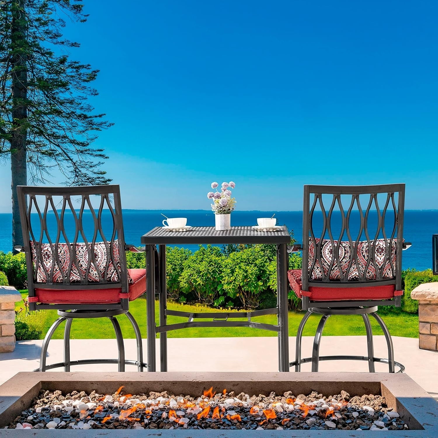 Welcome to the comfortable outdoor life! This Patio Bar Table is designed to enhance your outdoor experience. The sturdy steel metal frame endows it with excellent stability and durability, fearless of wind and rain, and always stands firm outdoors. The unique umbrella hole design provides a cool shade even in hot summer days. The bar height is adaptable, making it perfect for afternoon tea breaks in the garden, joyful parties in the backyard, or relaxing gatherings on the terrace or by the pool. Classic black appearance, simple and atmospheric, versatile in various outdoor styles. Come and have it, add infinite excitement to your outdoor time!