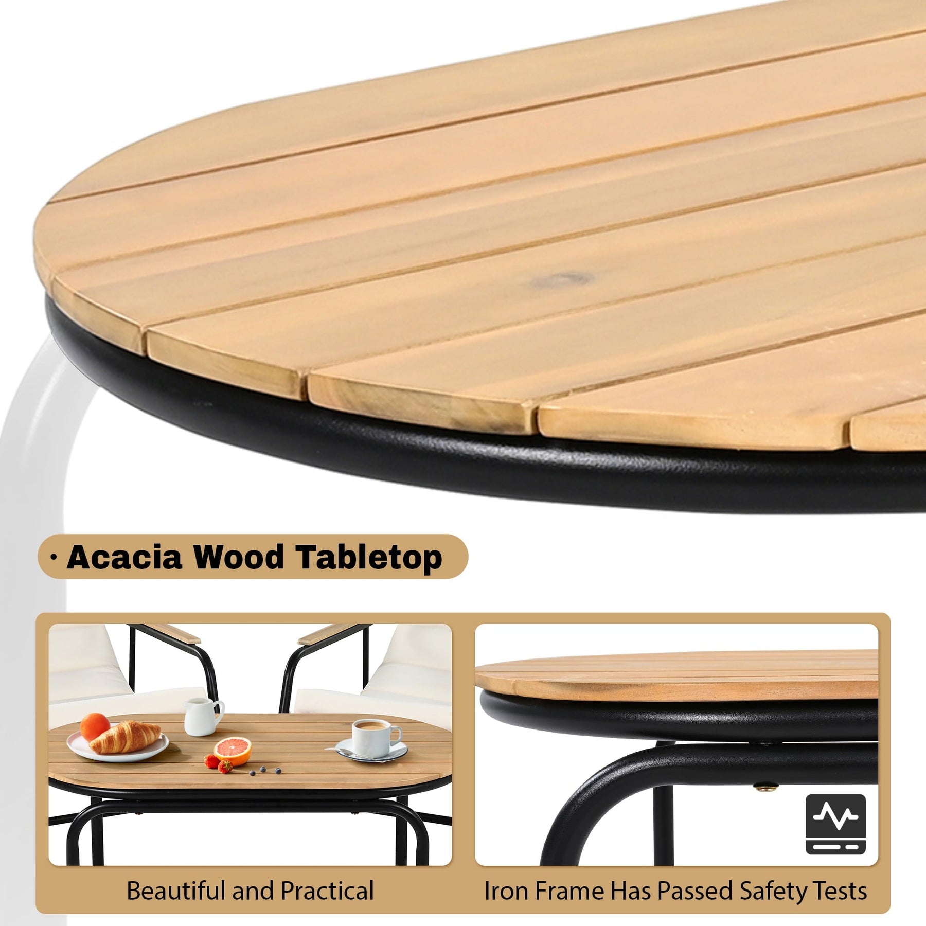 Euroco Outdoor Chaise Lounge Chairs Set with Acacia Wood Table,Pool Lounge Chairs for Lawn,Beige+White