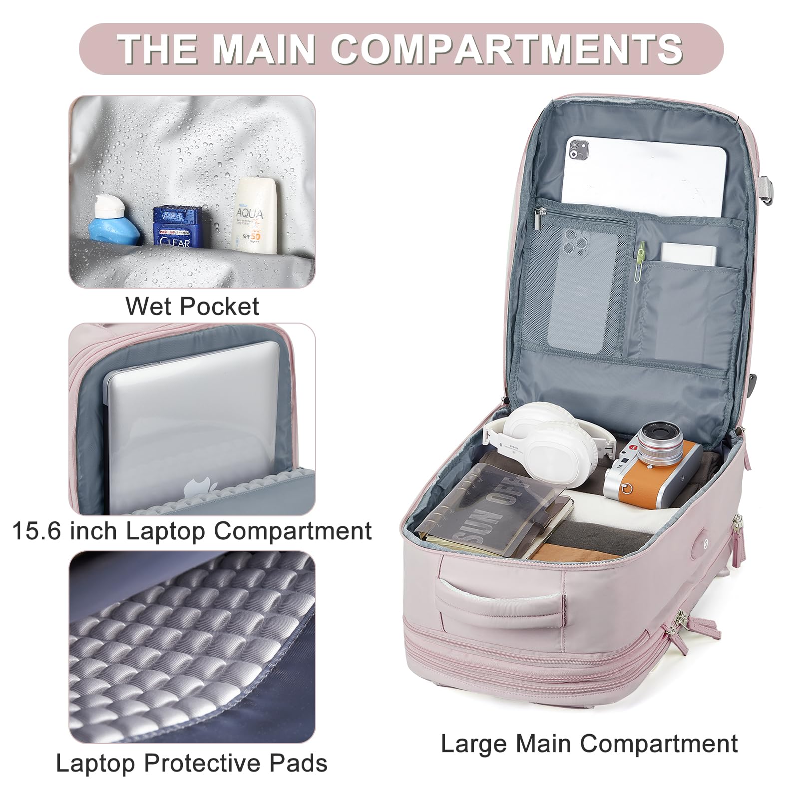 - 【Comfort and Safety】 Comfortable airflow back design, thick and soft multi-panel ventilated padding provides back support. Breathable, adjustable shoulder straps and a chest buckle to relieve shoulder pressure. This backpack can be slipped on the trolley of the suitcase to make traveling easier. Hidden anti-theft zipper pocket on the back of the backpack to prevent your valuables from being stolen.