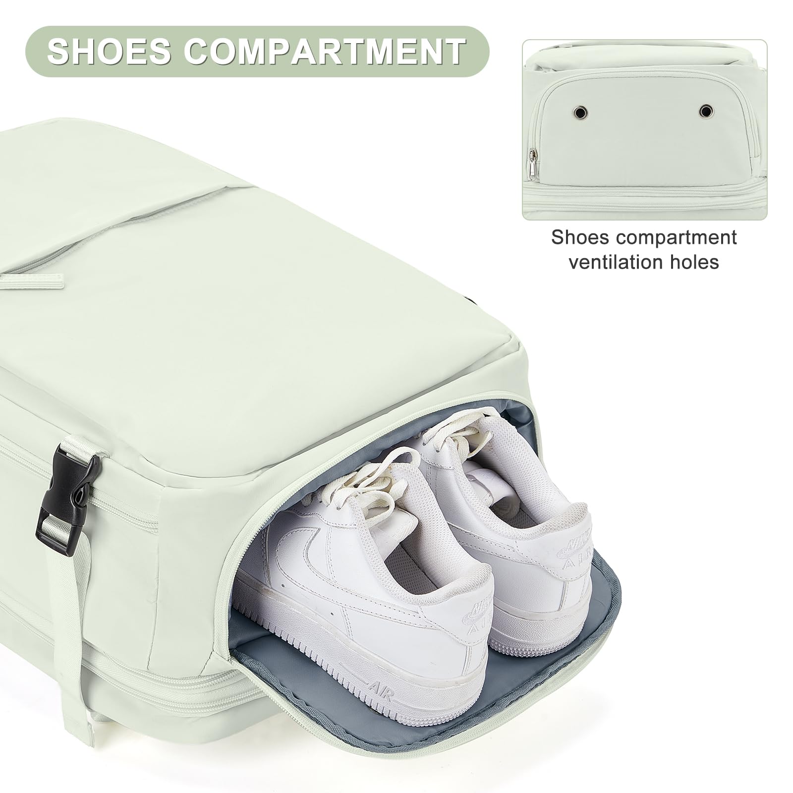 - 【Separate Shoes Compartment and Wet Pocket】The shoes compartment can hold a pair of slippers or low-top sneakers, allowing you to switch freely in different states of travel, business trips and outdoor sports; the wet pocket is made of high-density waterproof material, which can be used with to store wet items, making your stay in a hotel or apartment more convenient.