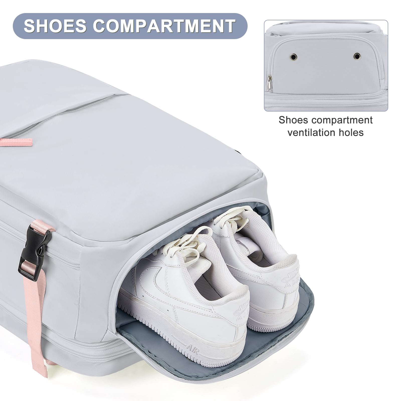 - 【Separate Shoes Compartment and Wet Pocket】The shoes compartment can hold a pair of slippers or low-top sneakers, allowing you to switch freely in different states of travel, business trips and outdoor sports; the wet pocket is made of high-density waterproof material, which can be used with to store wet items, making your stay in a hotel or apartment more convenient.