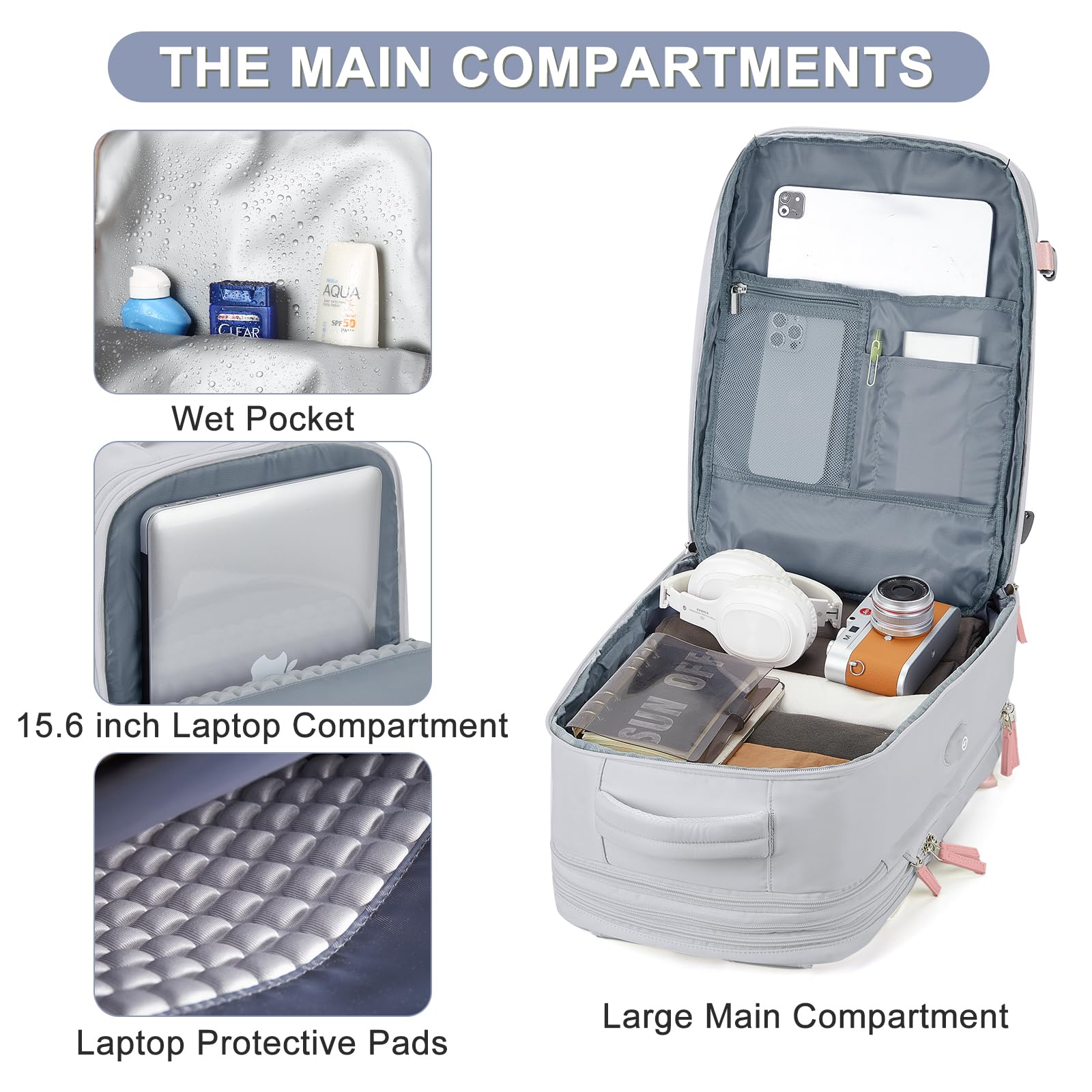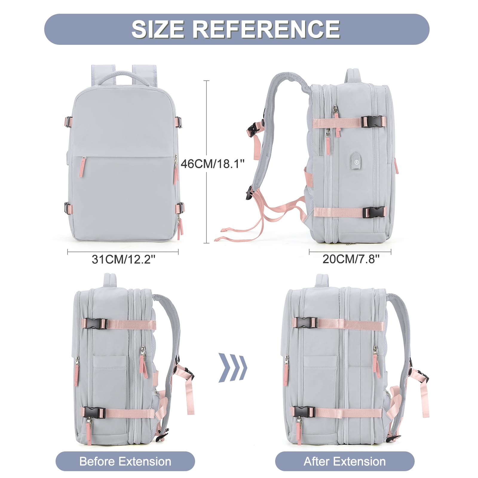 - 【Comfort and Safety】 Comfortable airflow back design, thick and soft multi-panel ventilated padding provides back support. Breathable, adjustable shoulder straps and a chest buckle to relieve shoulder pressure. This backpack can be slipped on the trolley of the suitcase to make traveling easier. Hidden anti-theft zipper pocket on the back of the backpack to prevent your valuables from being stolen.