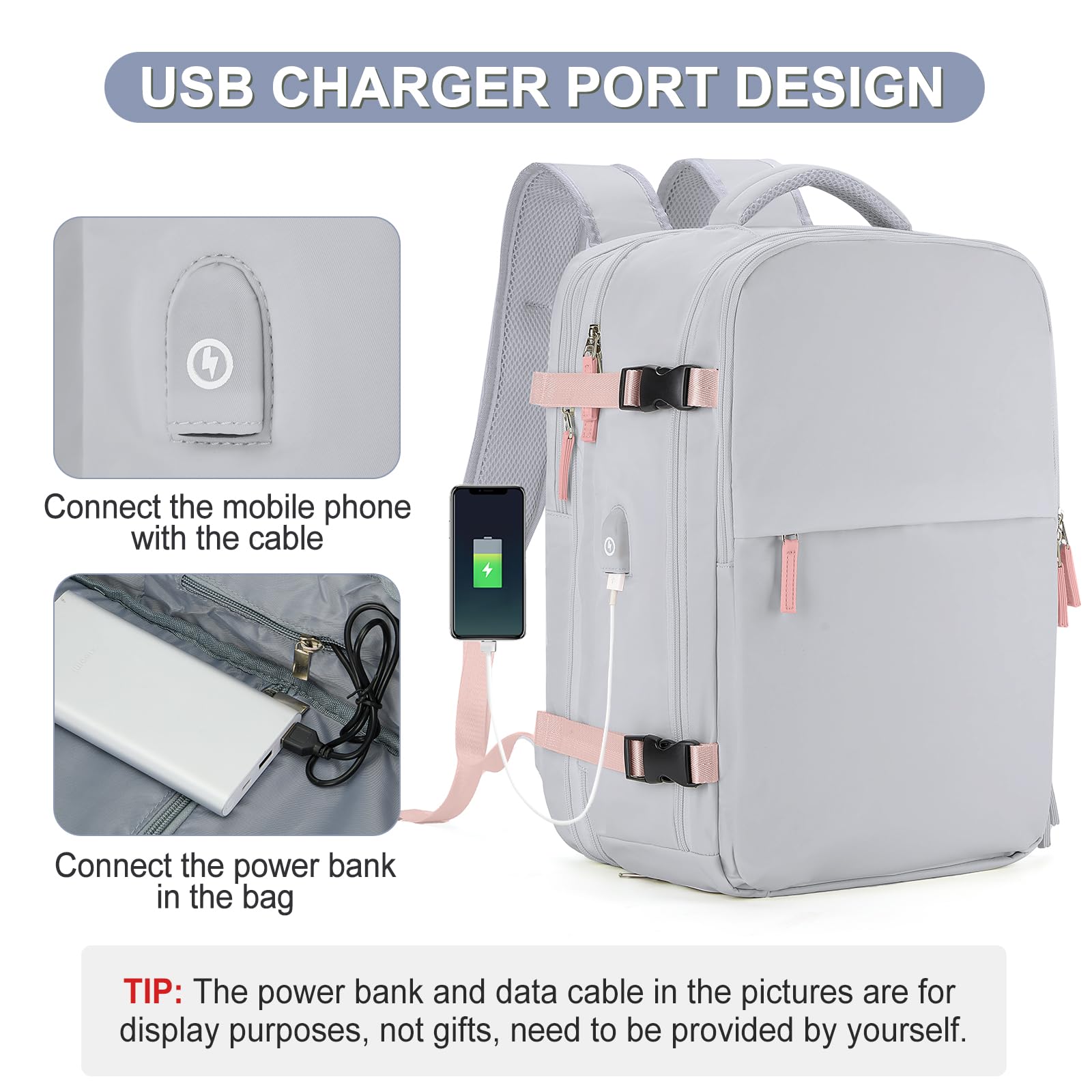 - 【USB Port Design】This backpack has a USB charging port, which can be connected to a power bank inside the bag, and a cell phone connected to the outside of the bag through a data cable, allowing you to charge your cell phone or iPad while walking, reducing the burden on your hands and avoiding miss information. Please note that the backpack does not come with a power bank and data cable, it is only for the convenience of mobile phone charging.