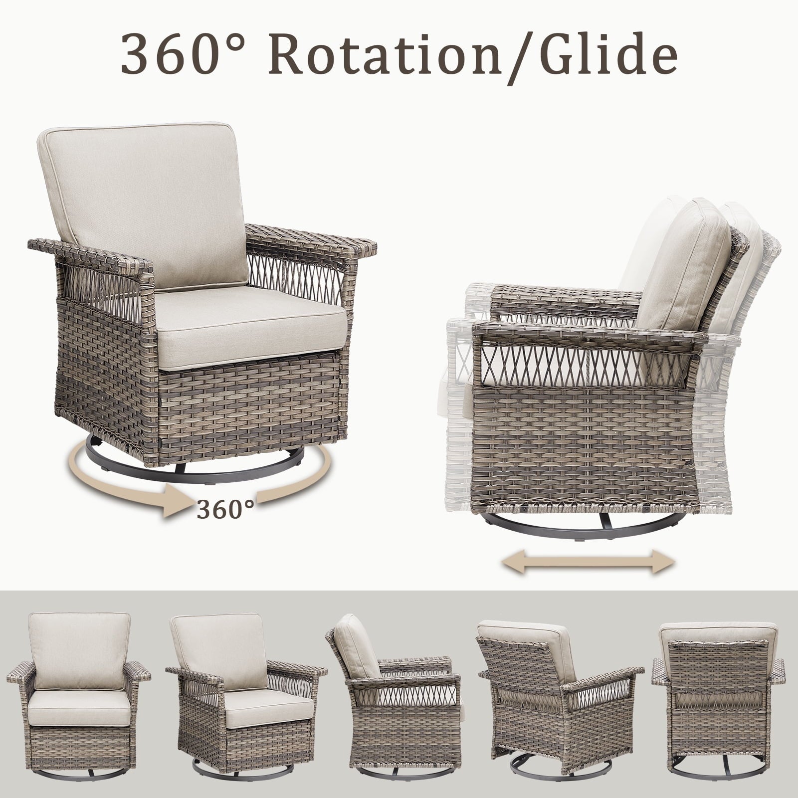 Feishominoo patio furniture sets are crafted with meticulously hand-woven PE wicker with exceptional weatherproofing and waterproofing for easy maintenance. The powder-coated steel frames ensure stability and durability. The ergonomic backrests, wide armrests, and spacious seats provide you with a comfortable seating experience. Each cushion with a 4-inch high-density 28D foam core provides pillow-like softness and responsive cushioning. This outdoor wicker furniture set is perfect for your outdoor space, like your patios, gardens, backyards, decks, porches, and so on.