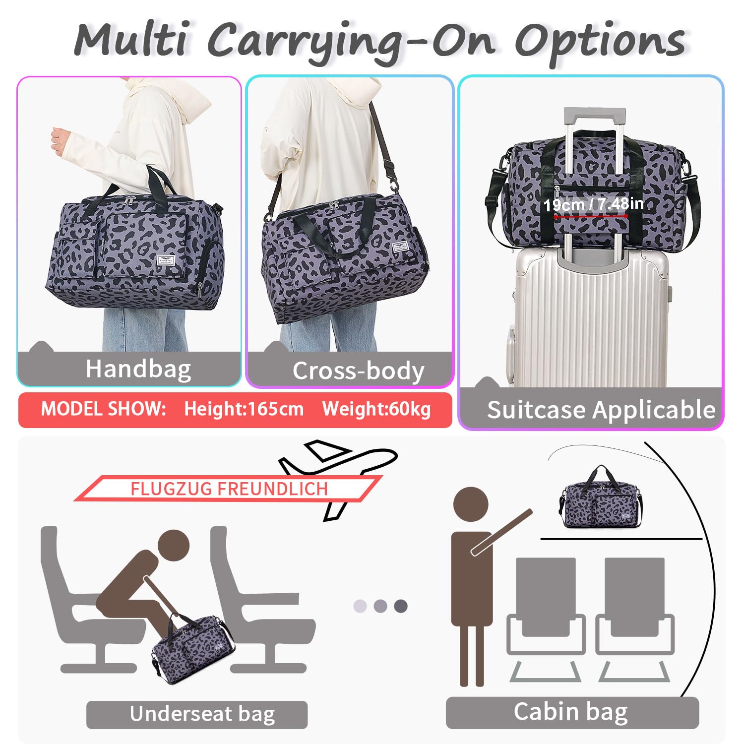• Portable Weekender & Overnight Bag: The weekend and overnight bag is 48*28*28cm(L*W*H) with 37L capacity. Besides,it has many internal and external organizational pockets, which enable you have enough place for everything