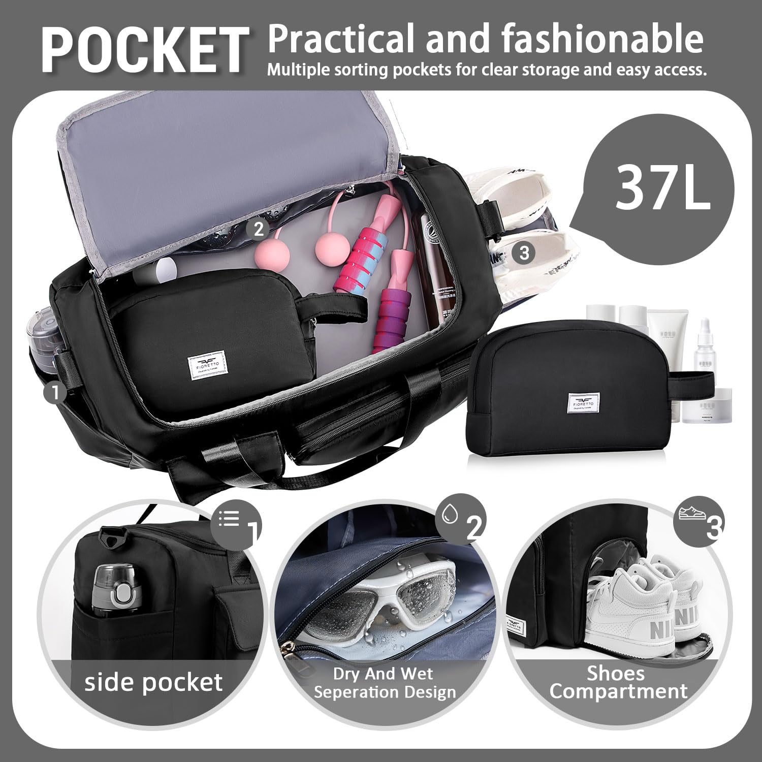 - Portable Weekender & Overnight Bag: The weekend and overnight bag is 48*28*28cm(L*W*H) with 37L capacity. Besides,it has many internal and external organizational pockets, which enable you have enough place for everything