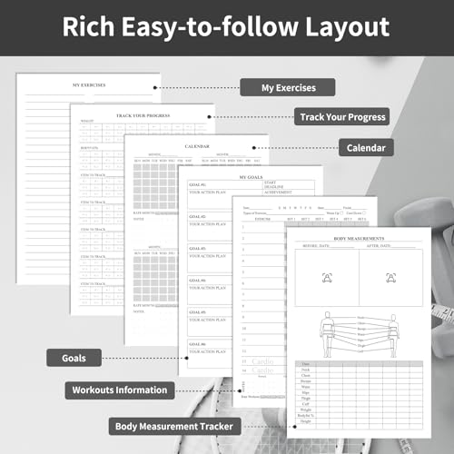 - Practical and Sturdy - The Workout log book is A5 size (5.8 inches x 8.4 inches), waterproof cover, 100gsm thick page and transparent pocket.