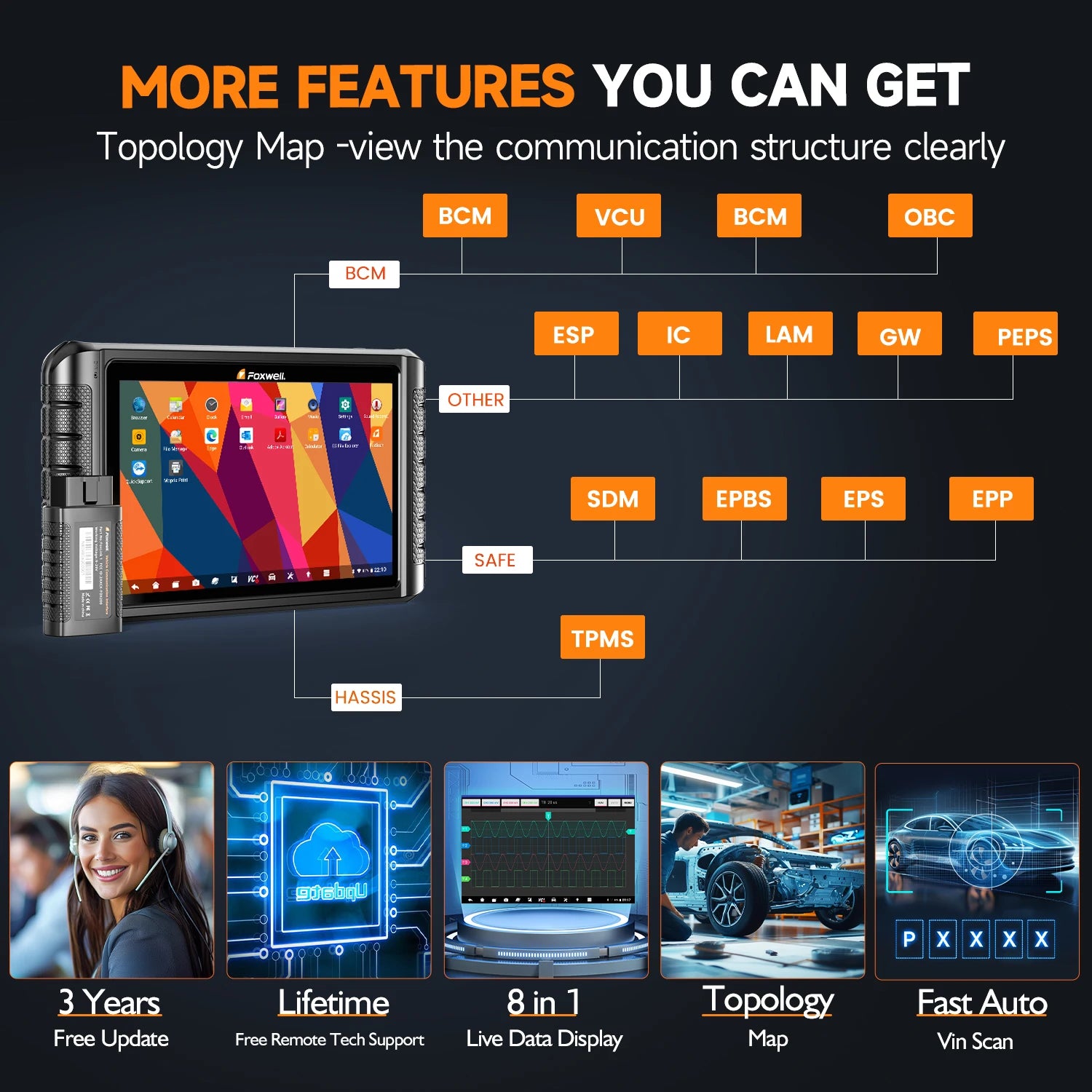 FOXWELL NT1009 10.1 inch OBD2 Car Scanner ECU Coding Active Test Guided Functions OE All System OBD2 Automotive Diagnosis Tools