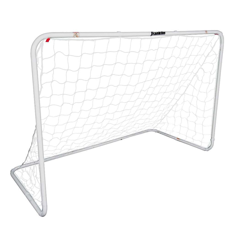 Franklin Sports Competition Soccer Goal - Steel Backyard Soccer Goal with All Weather Net - Includes 6 Ground Stakes - 6'x4' - Silver
