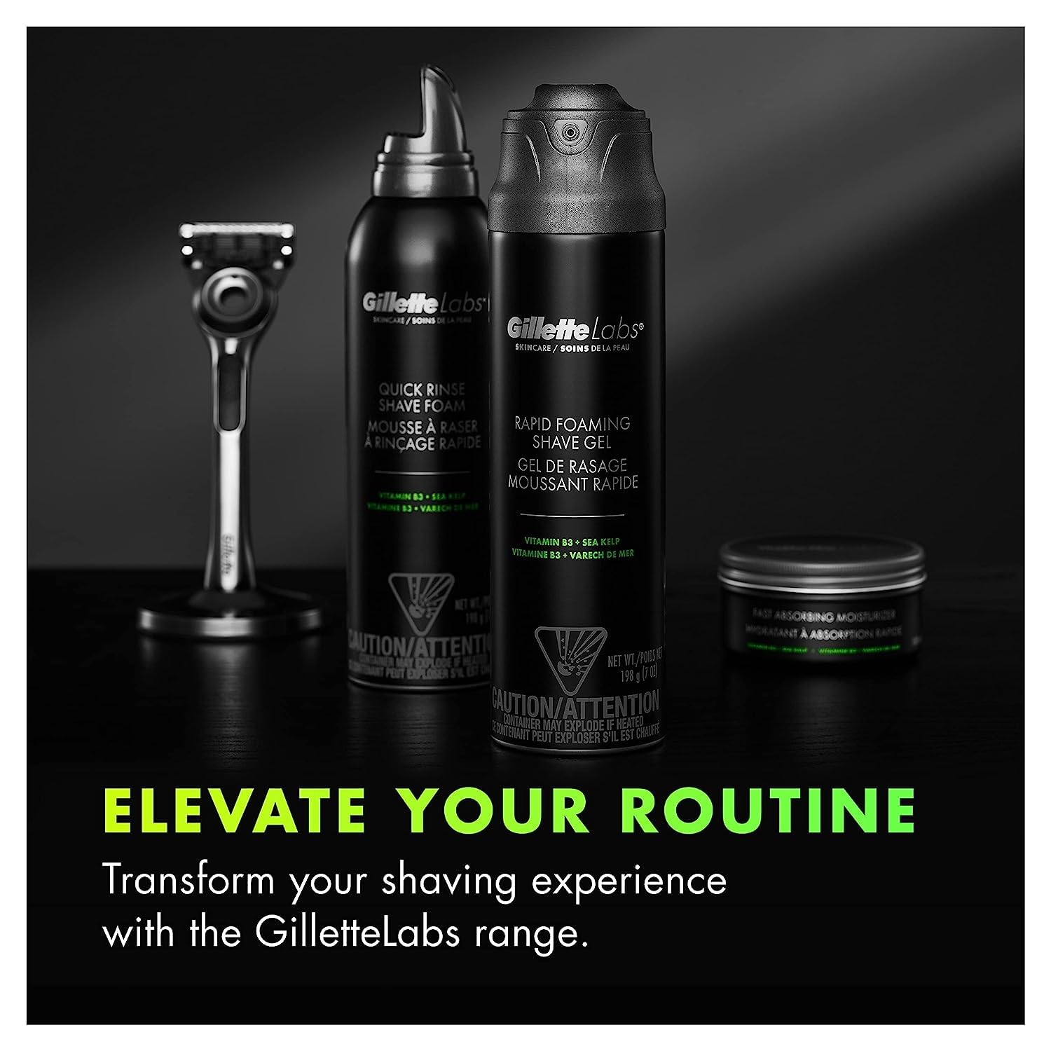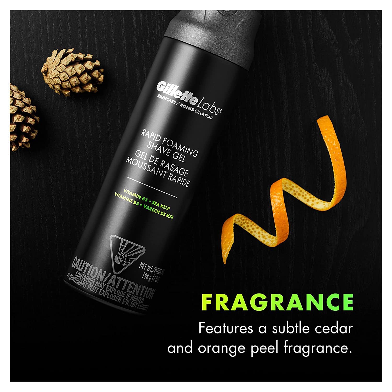 Gillette Labs Rapid Foaming Shaving Gel for Men, Alcohol, Dye and Paraben-Free with Vitamin B3 and Sea Kelp, Cools and Soothes Skin, 7 OZ
