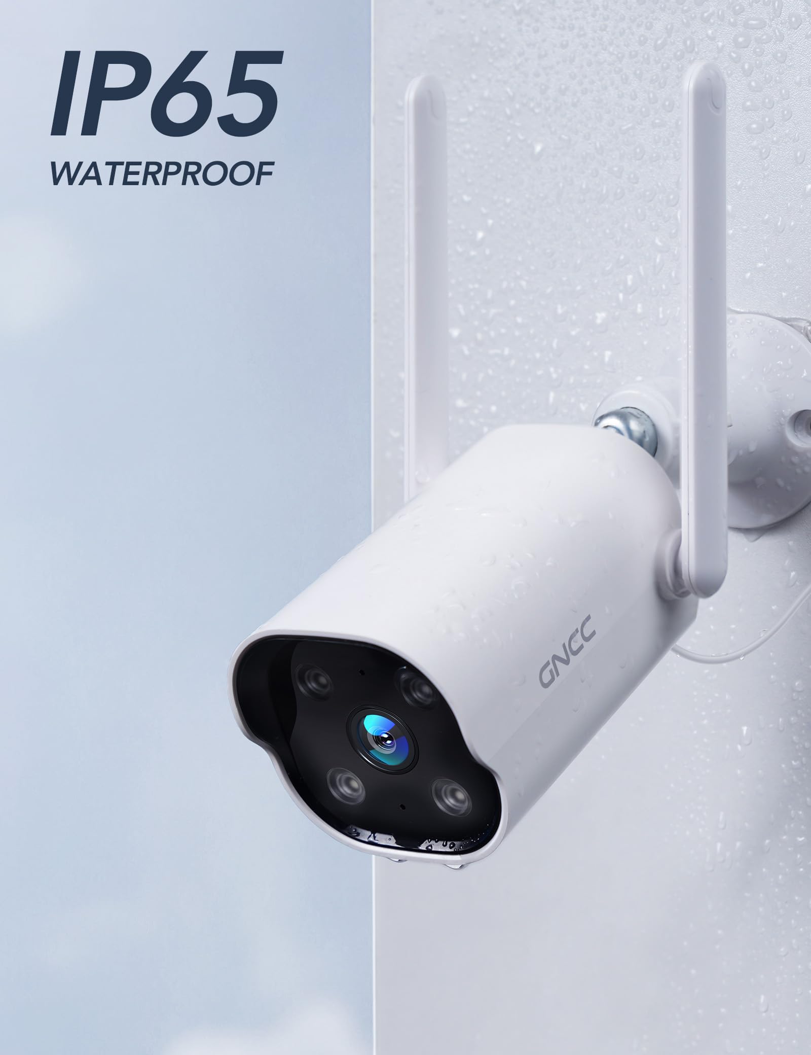 GNCC GT1Pro 2K Outdoor Security Camera, CCTV Camera for Home, IP65 Weatherproof, Night Vision, AI Motion Detection, Siren Alarm, 2-Way Audio, Works with Alexa & Google, 2.4GHz WiFi, Wired 9.8 FT / 3m