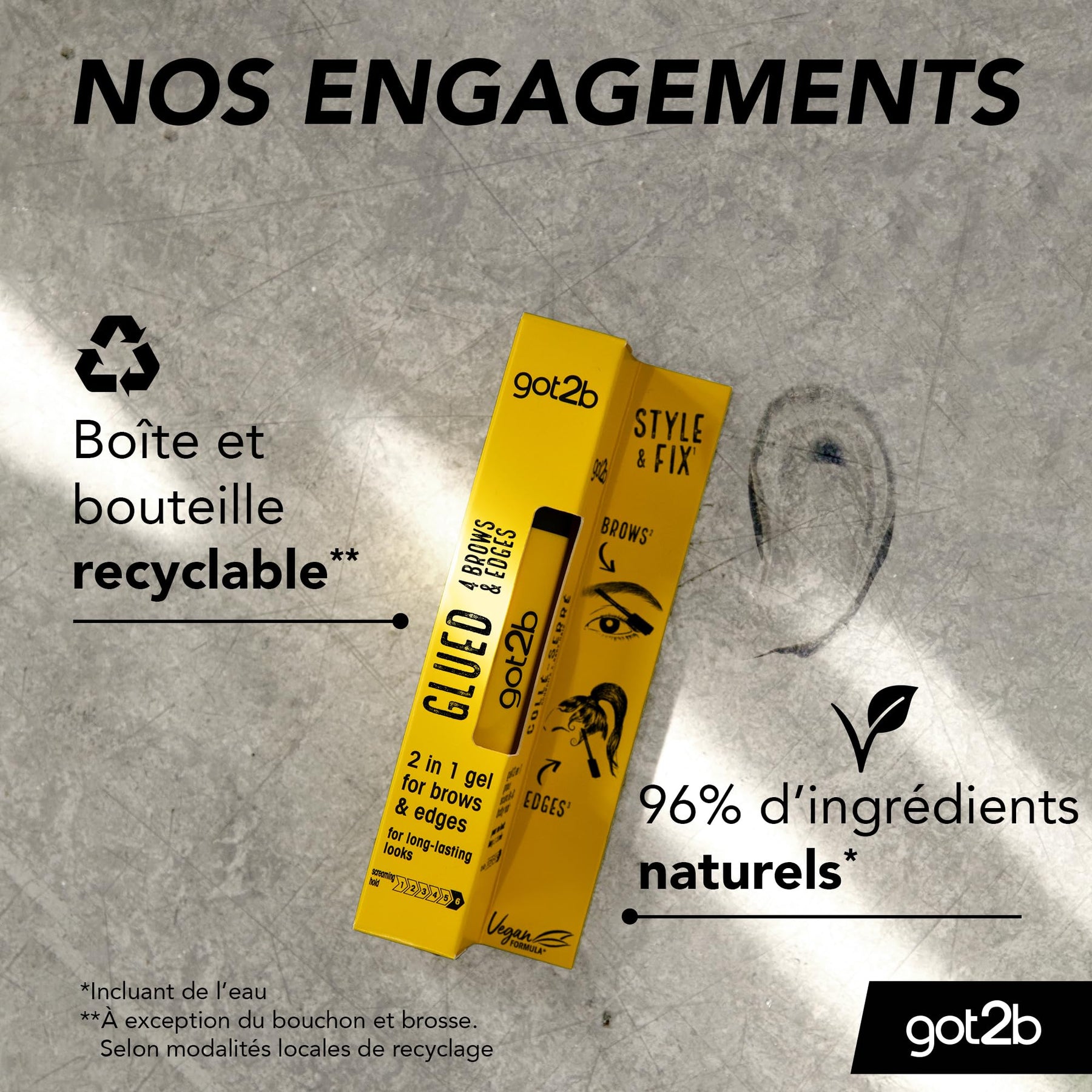 Details: Super strong hold gel up to 72 hrs for brows and edges Dermatologically tested, Vegan, Free from Silicones & Alcohol Fast drying, no flakes with no stickiness or white residue Two-sided fibre brush allows for easy and precise application and styling Celebrate your originality with got2b