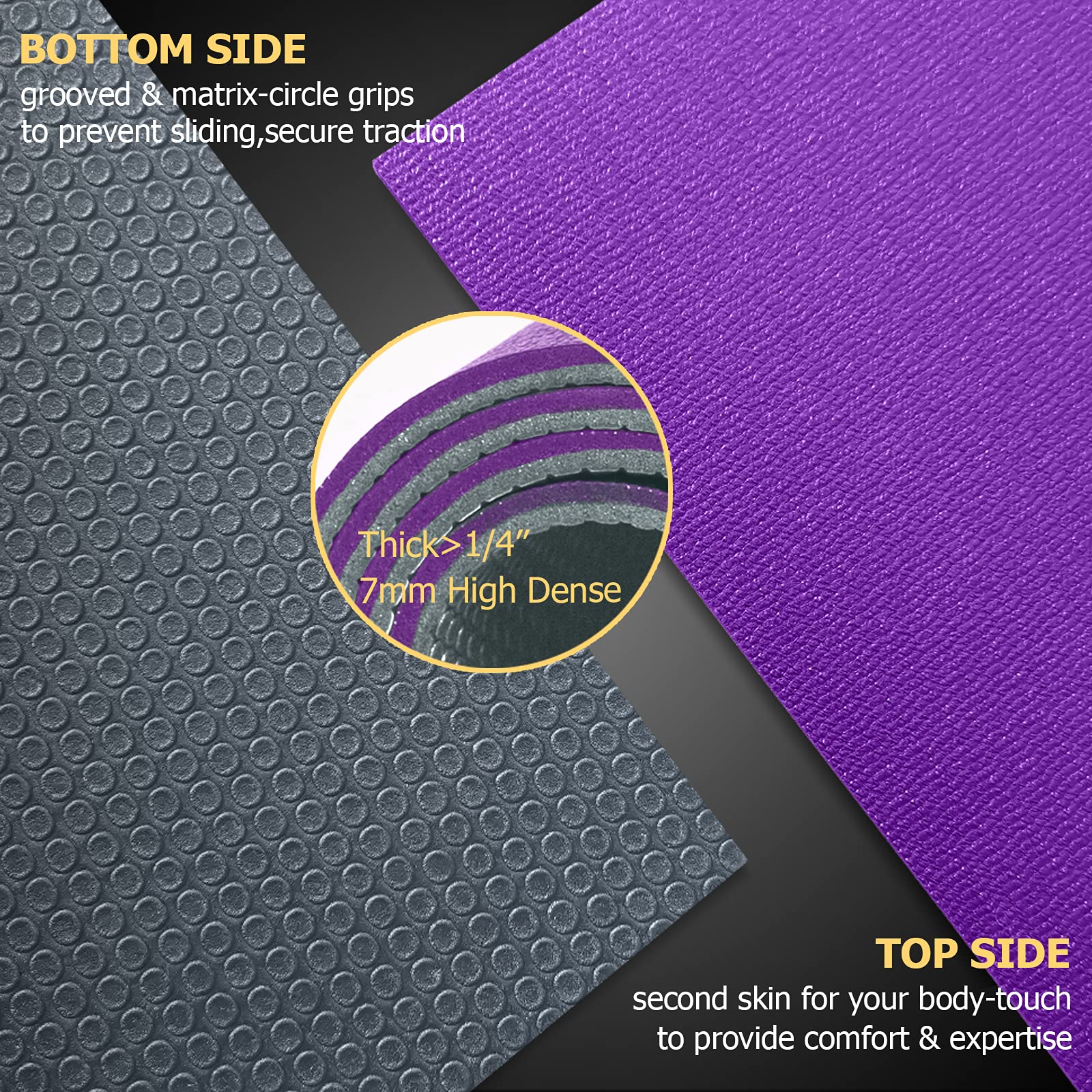 • 【DOUBLE SIDED NON-SLIP SURFACES】The spacious mat has double-sided no-skid surfaces for enhanced traction and superior grip. Grooved & matrix-circle underside stops the mat from sliding on the floor. The subtly textured surface prevents hands and feet from slipping out of position to prevent injuries. Work great for all floors, like carpet, tile or wood floor in the living or bedroom, and concrete in the garage, patio or basement.