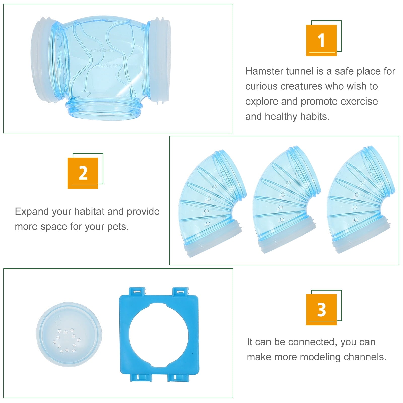 This hamster tube is made of premium material, which can withstand the long-lasting use. Features the plastic material, which has high durability, not easy to deform. Fine workmanship, it ensures the practicality.
